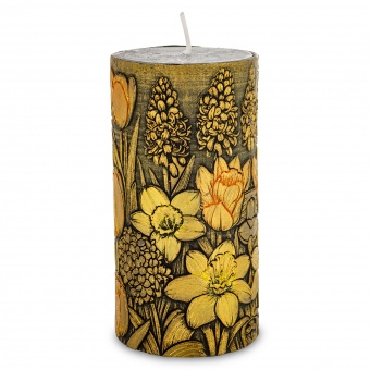Pl Świeca Walec Mały Kwiaty Czarnyn Zieleń Trawias
