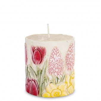 Pl Świeca Walec Średni Kwiaty Biały Kolor