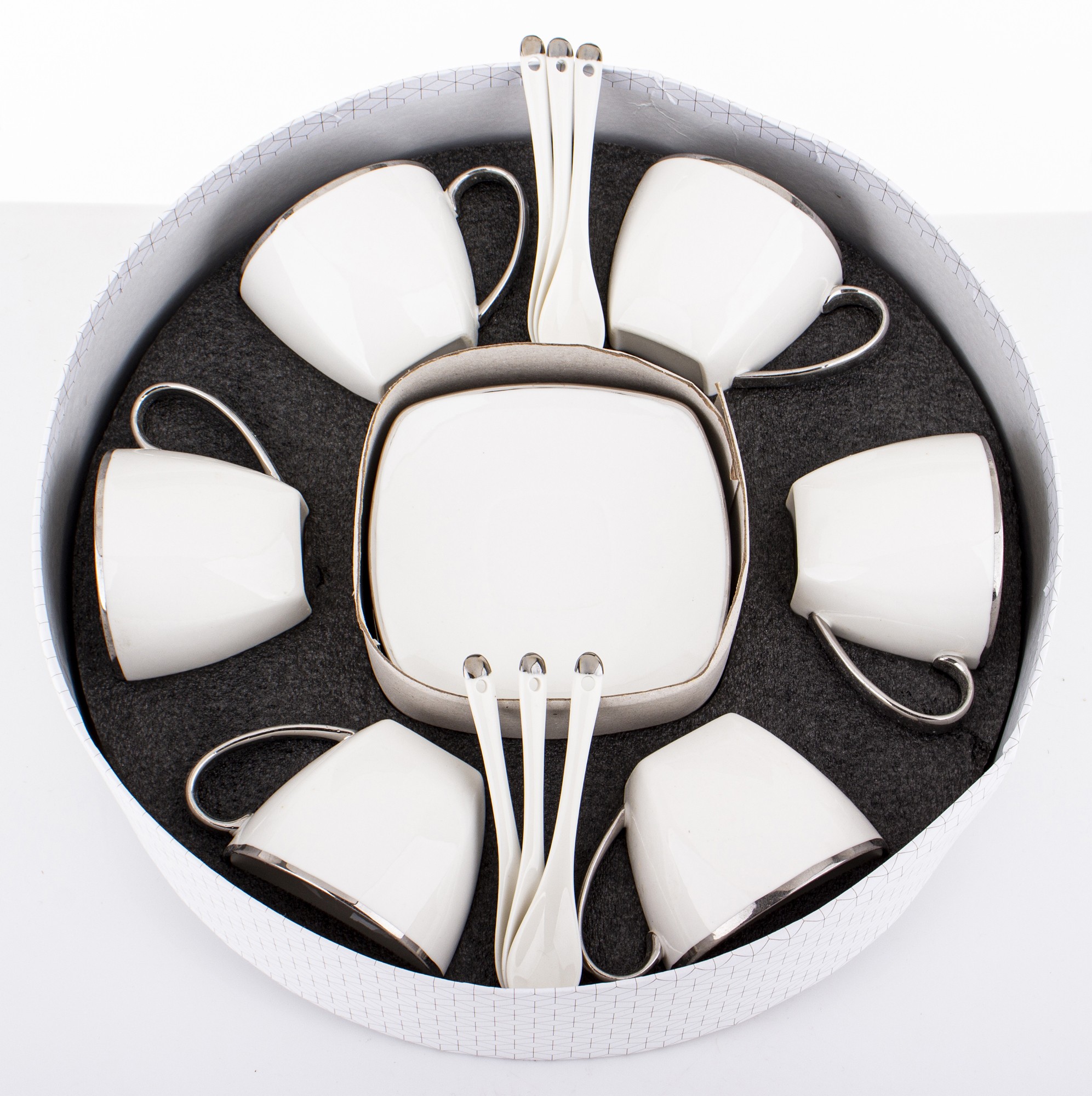 • Размер: filiżanka 6,5x12,5x10,5 podstawka 2,5x15,5x15,5
