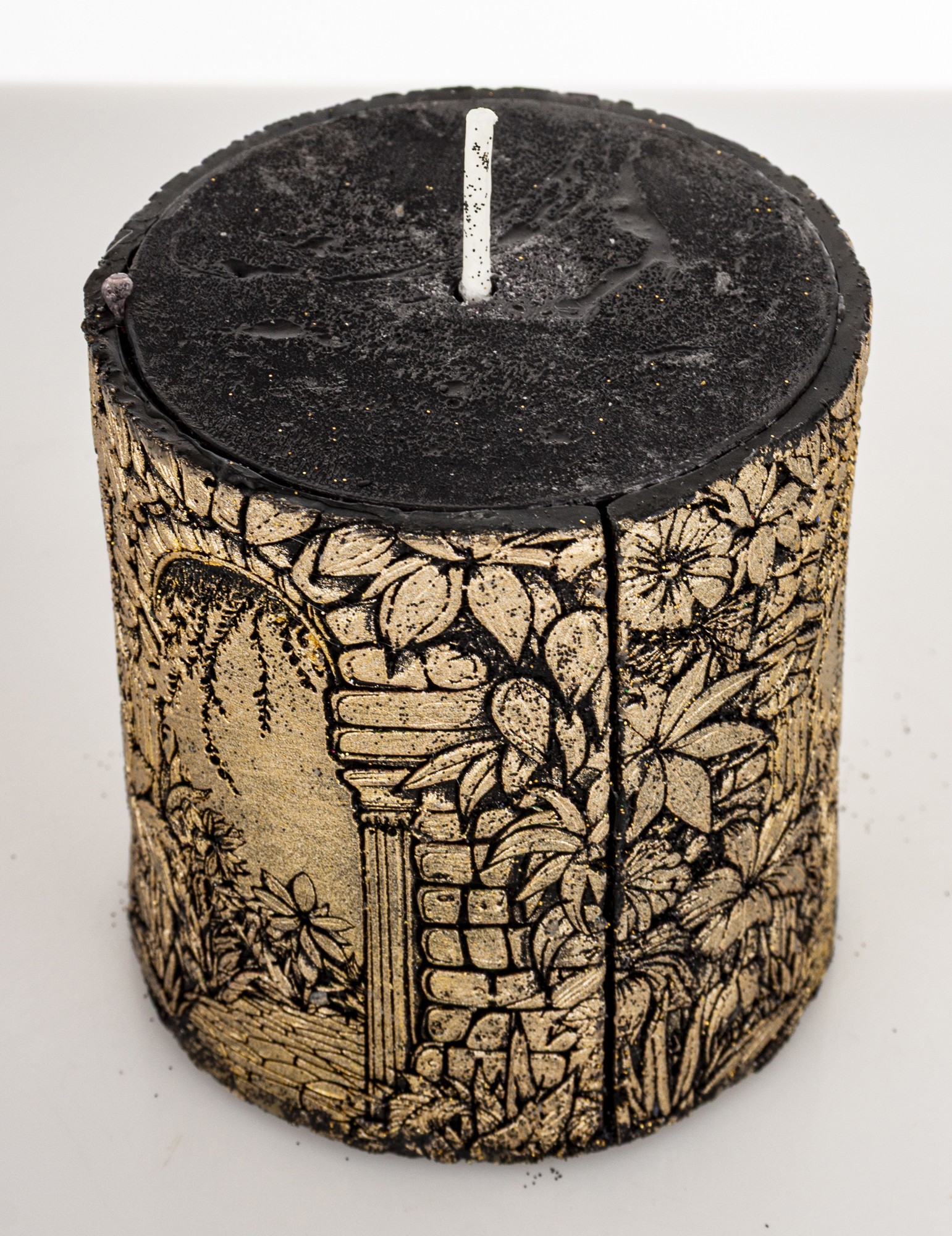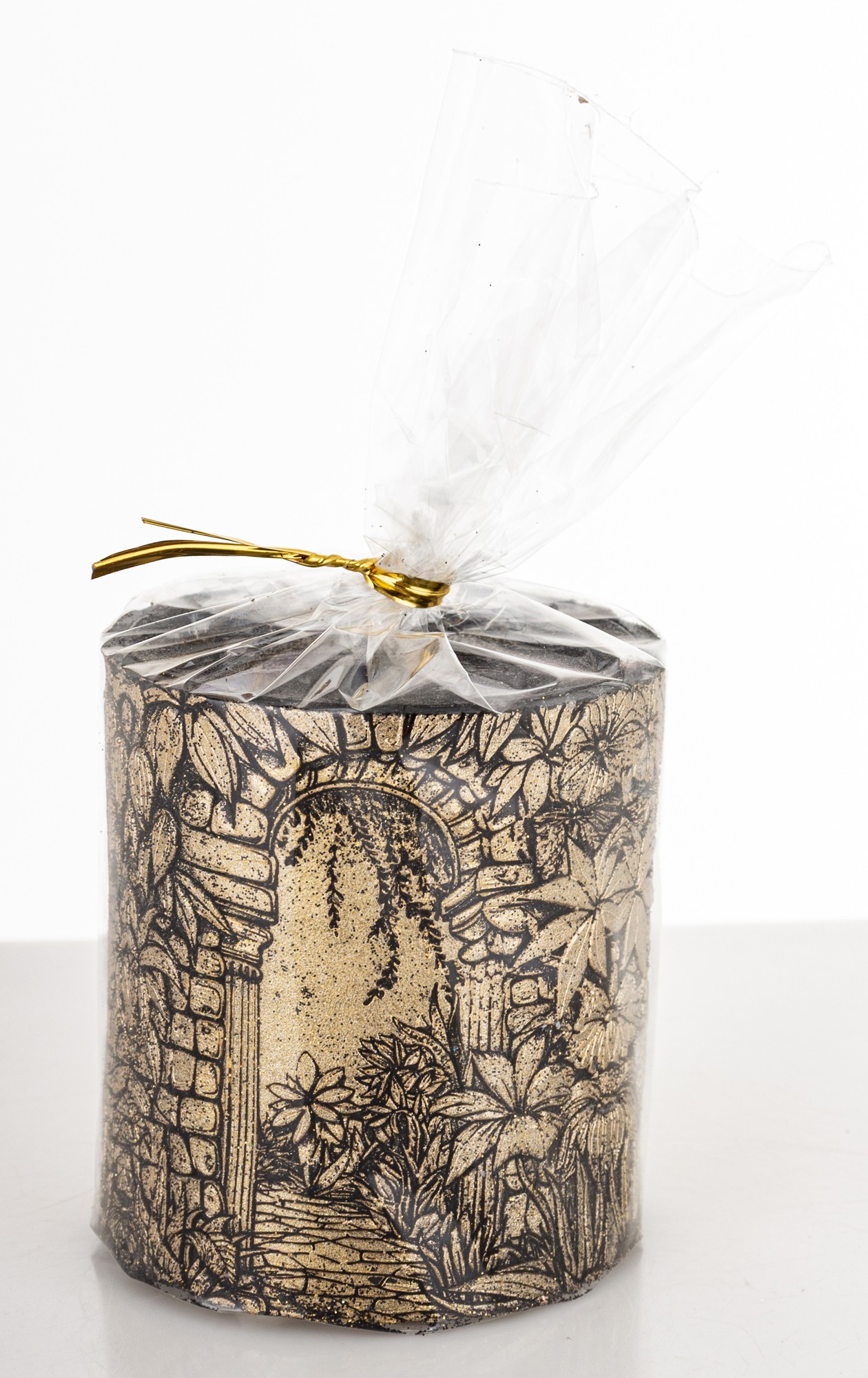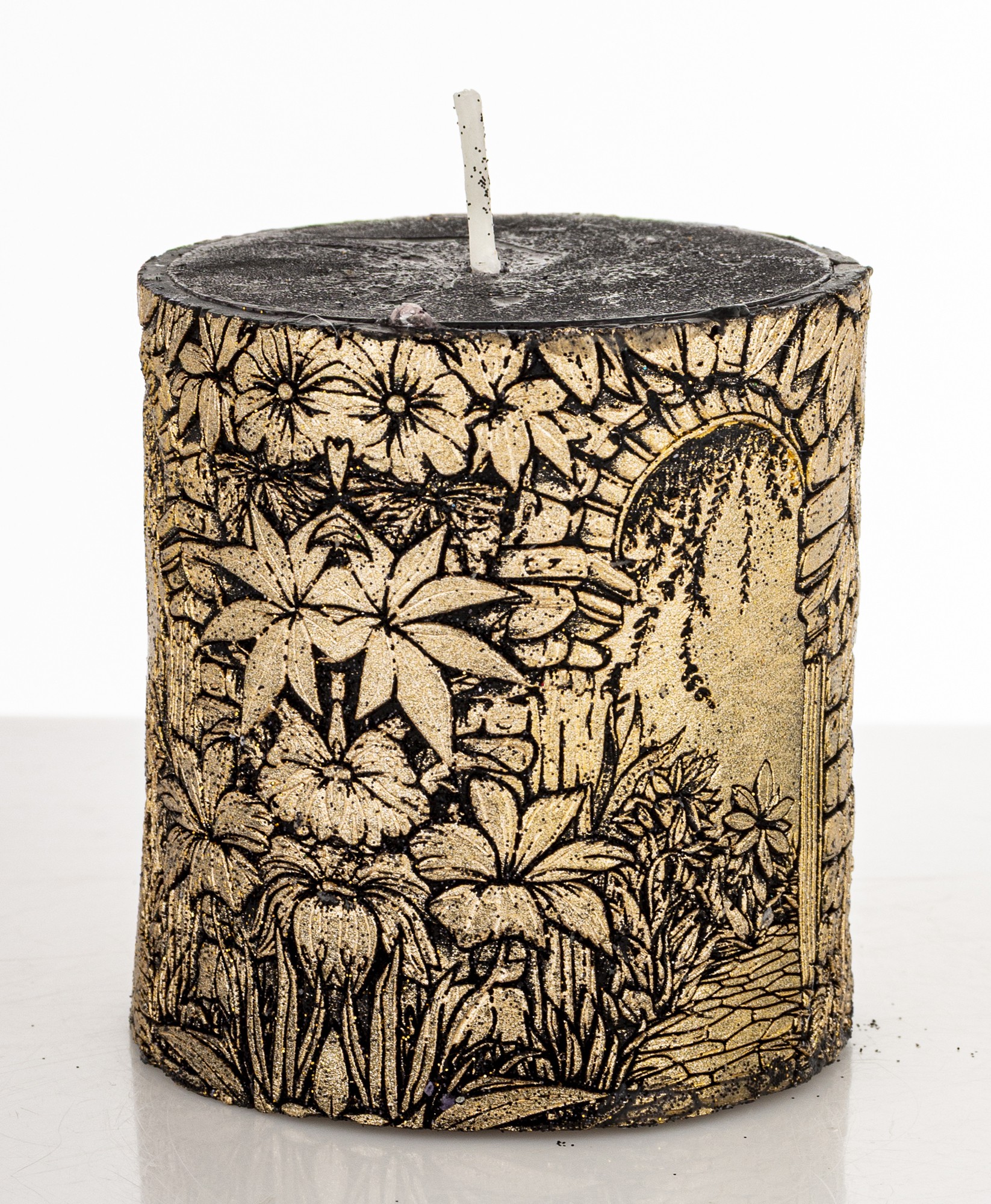 Pl Świeca Walec Mały Ogród Czarny Złoto