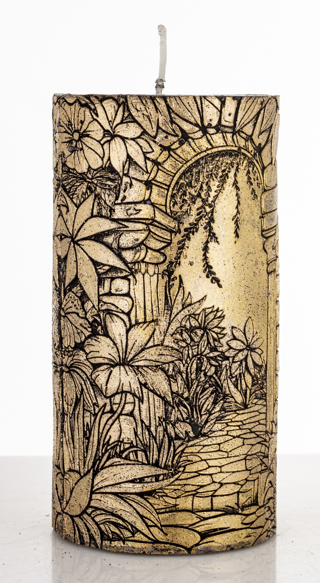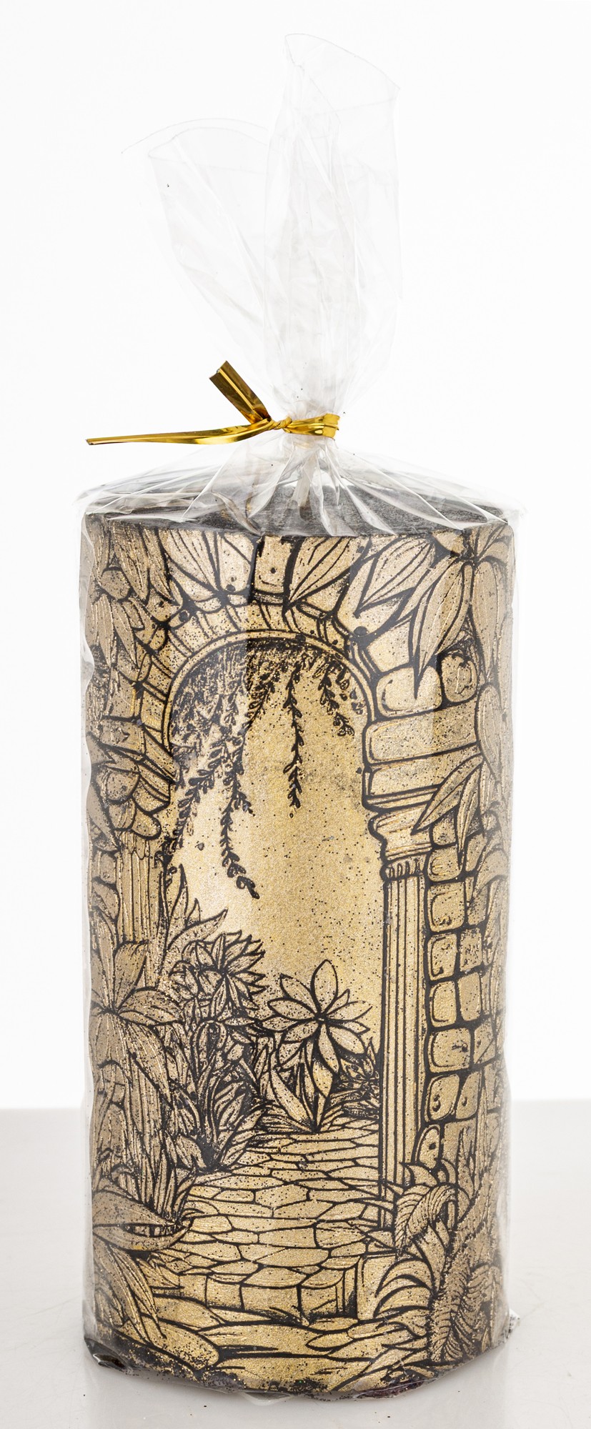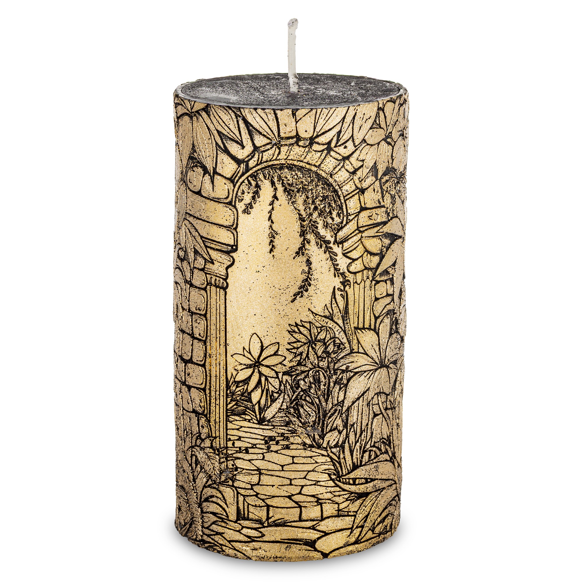 Pl Świeca Walec Średni Ogród Czarny Złoto