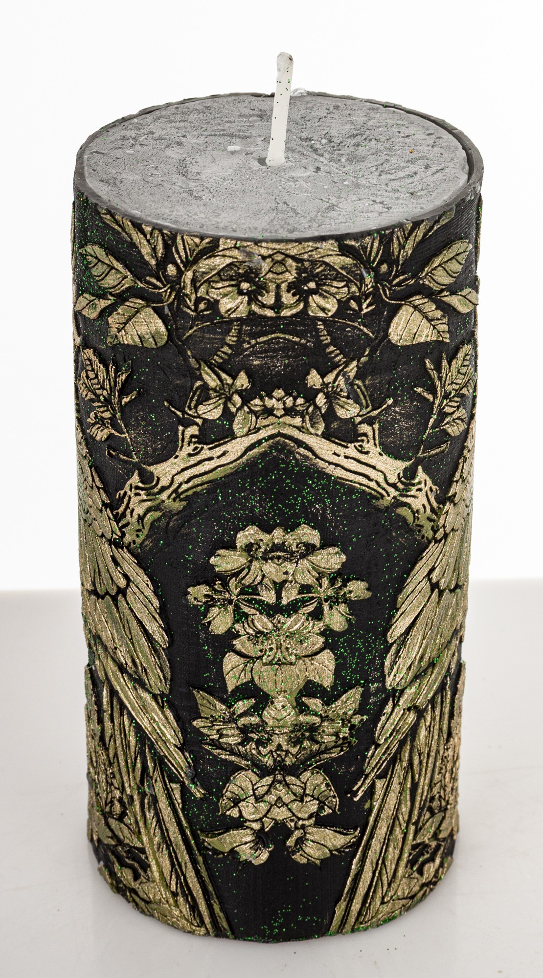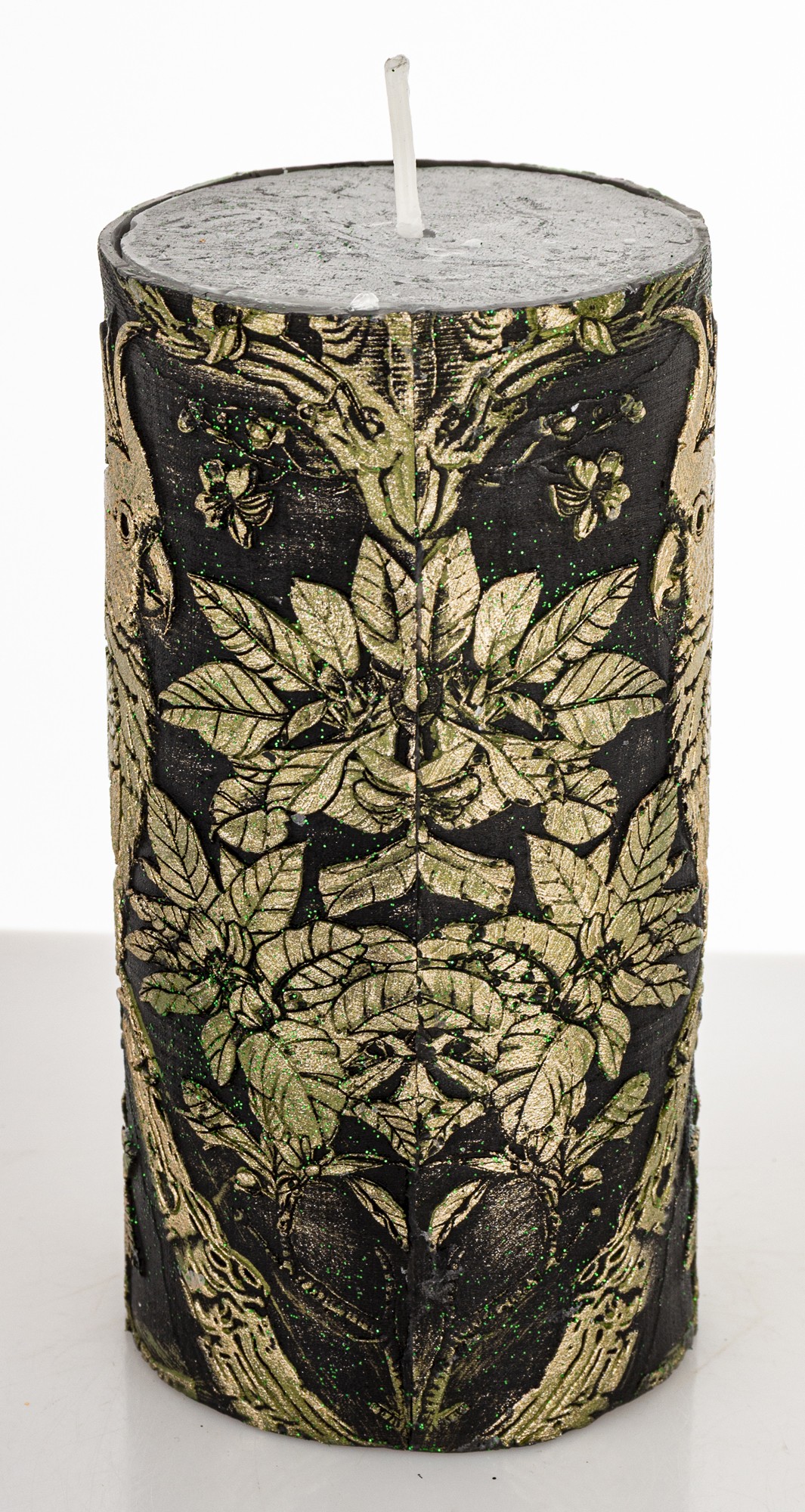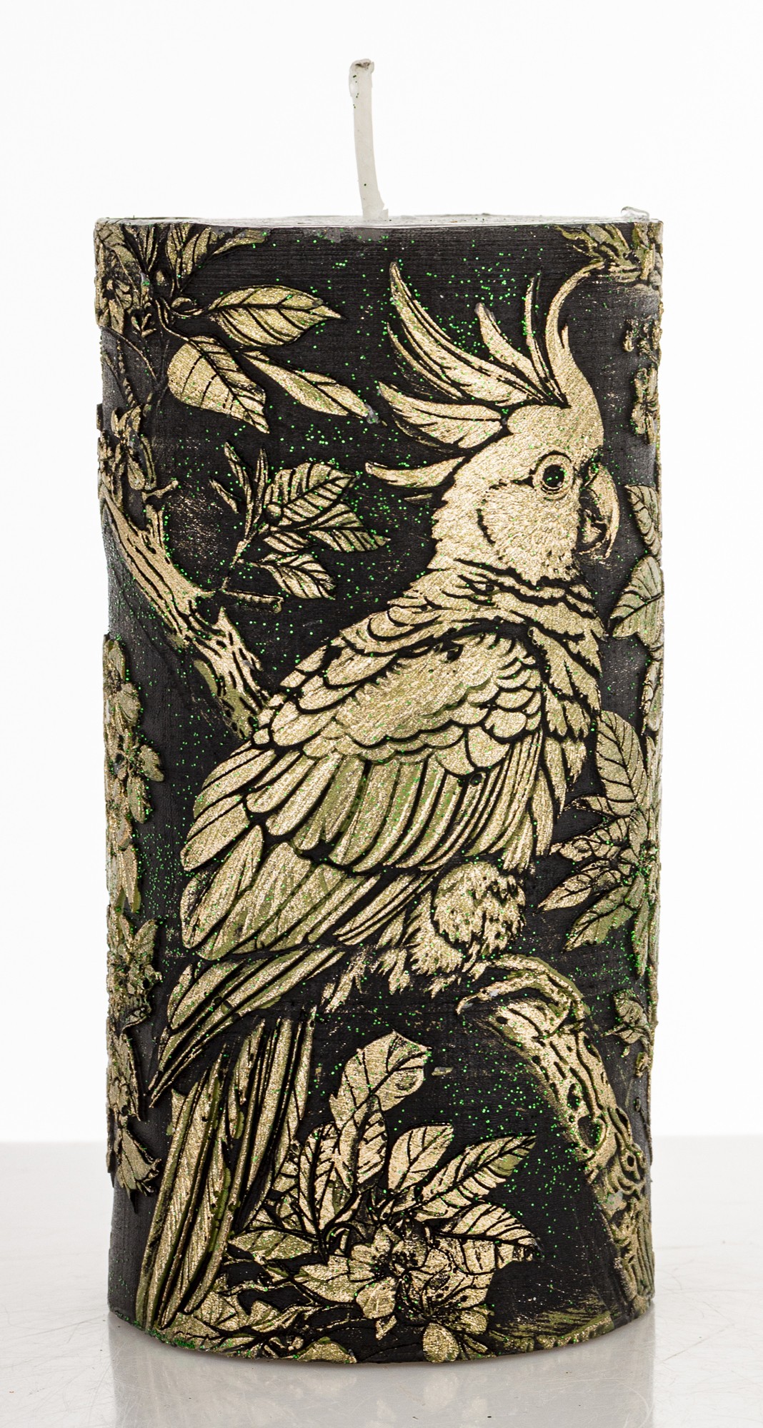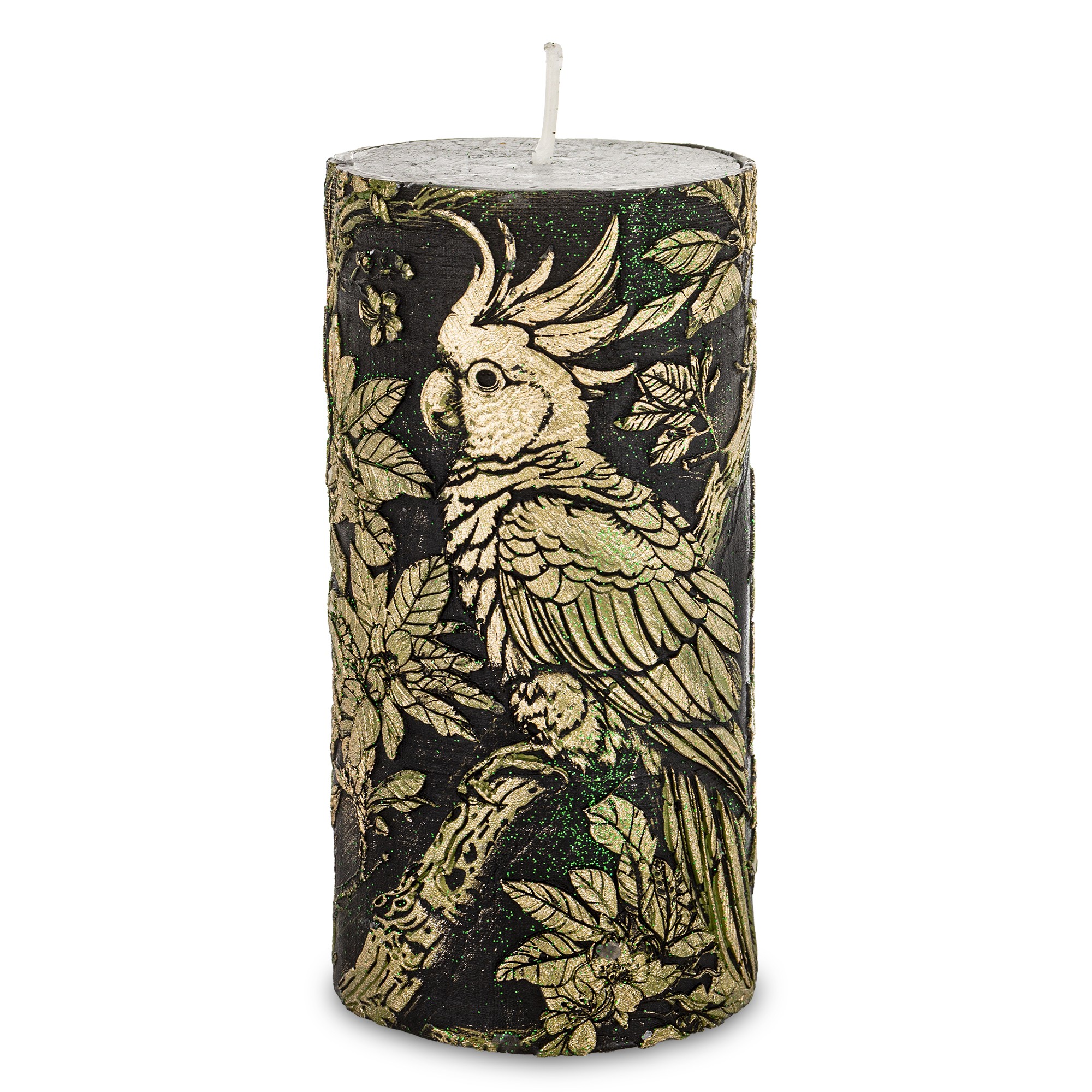 Pl Świeca Walec Średni Papuga Czarny Szampan Ziele