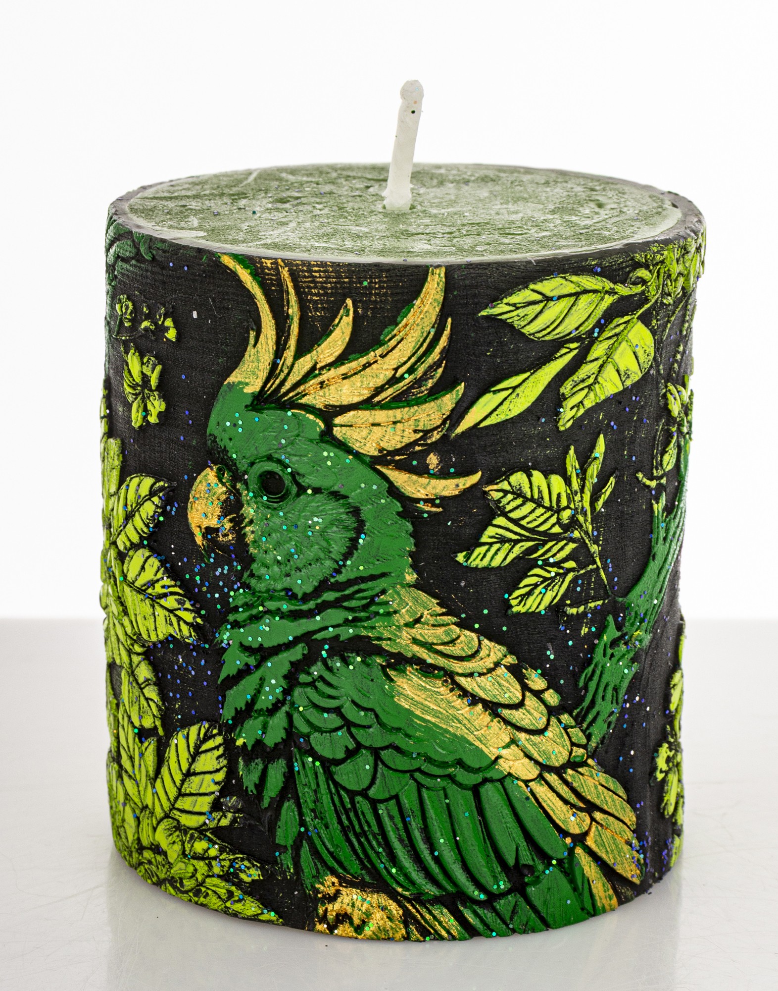 Pl Świeca Walec Mały Papuga Czarny Zieleń
