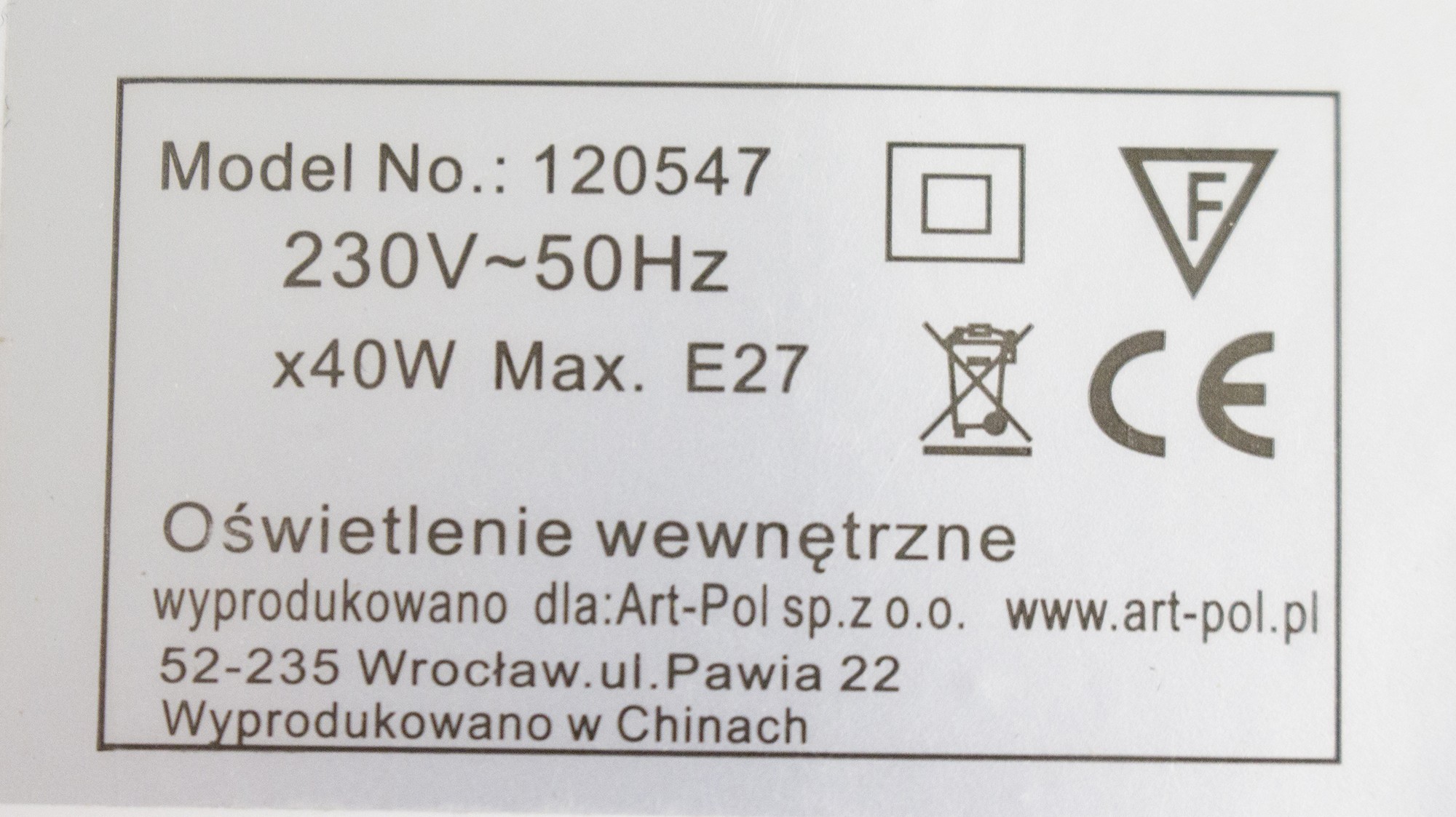 1xE27 макс 40 Вт, 230 В, 50 Гц