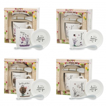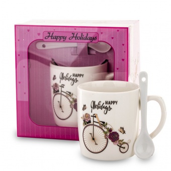 Пл кружка с ложкой + блюдце
