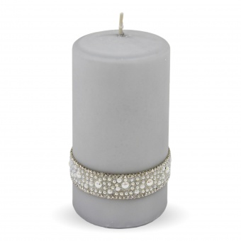 Pl Szary Perła Świeca Crystal Walec Mały Fi7-Prom.