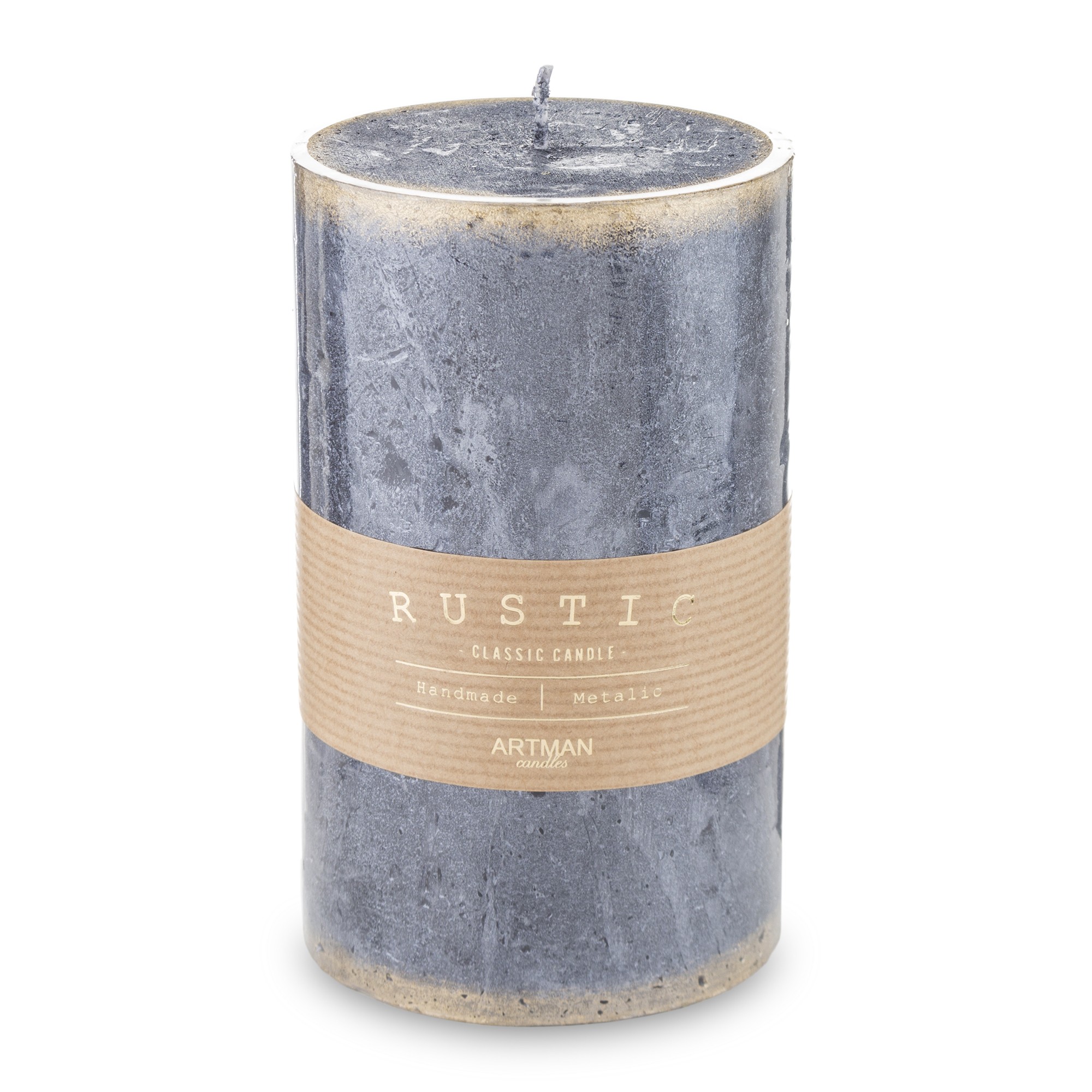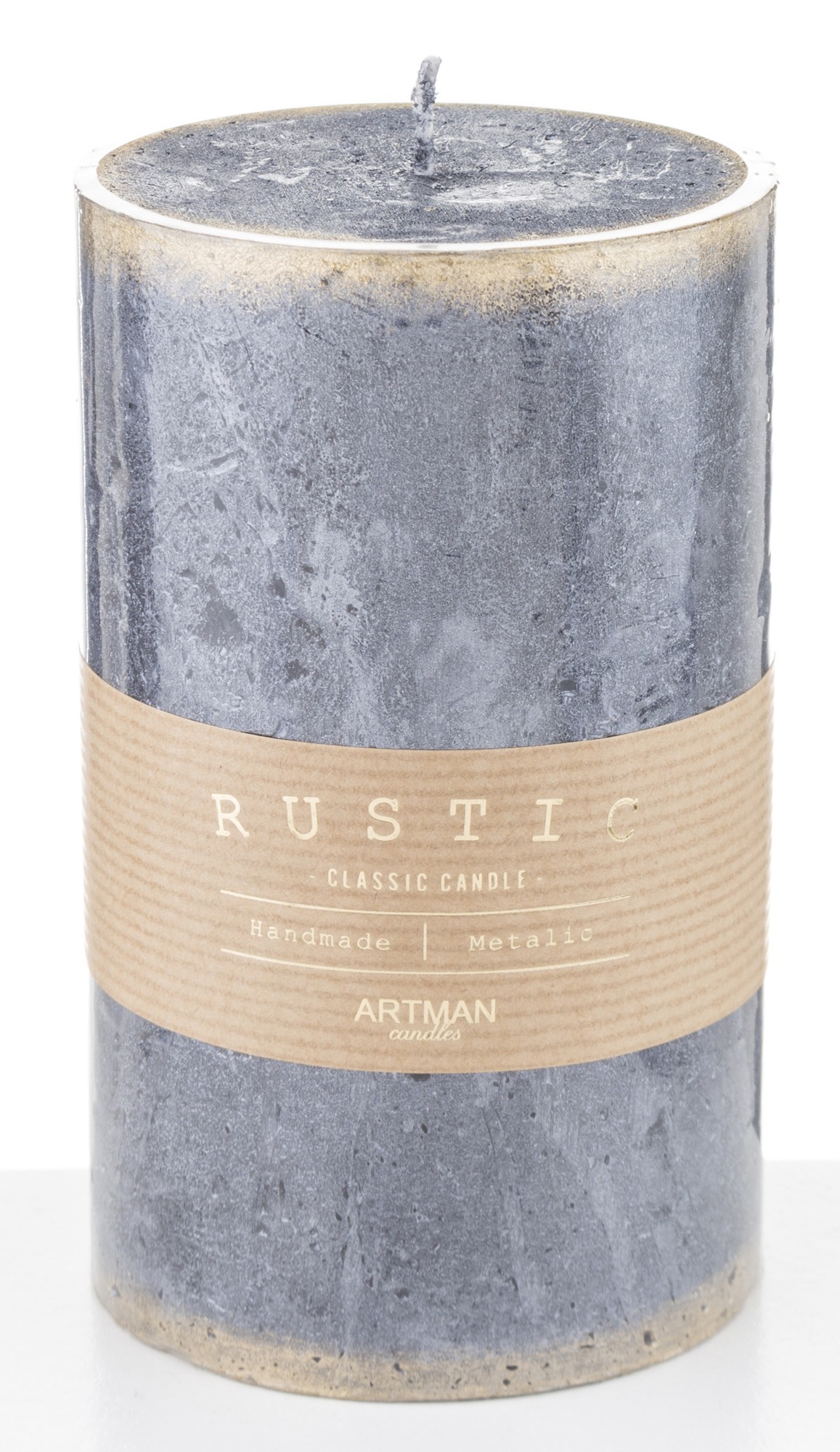 Pl Biały Świeca Rustic Metalic Walec Duży Fi9