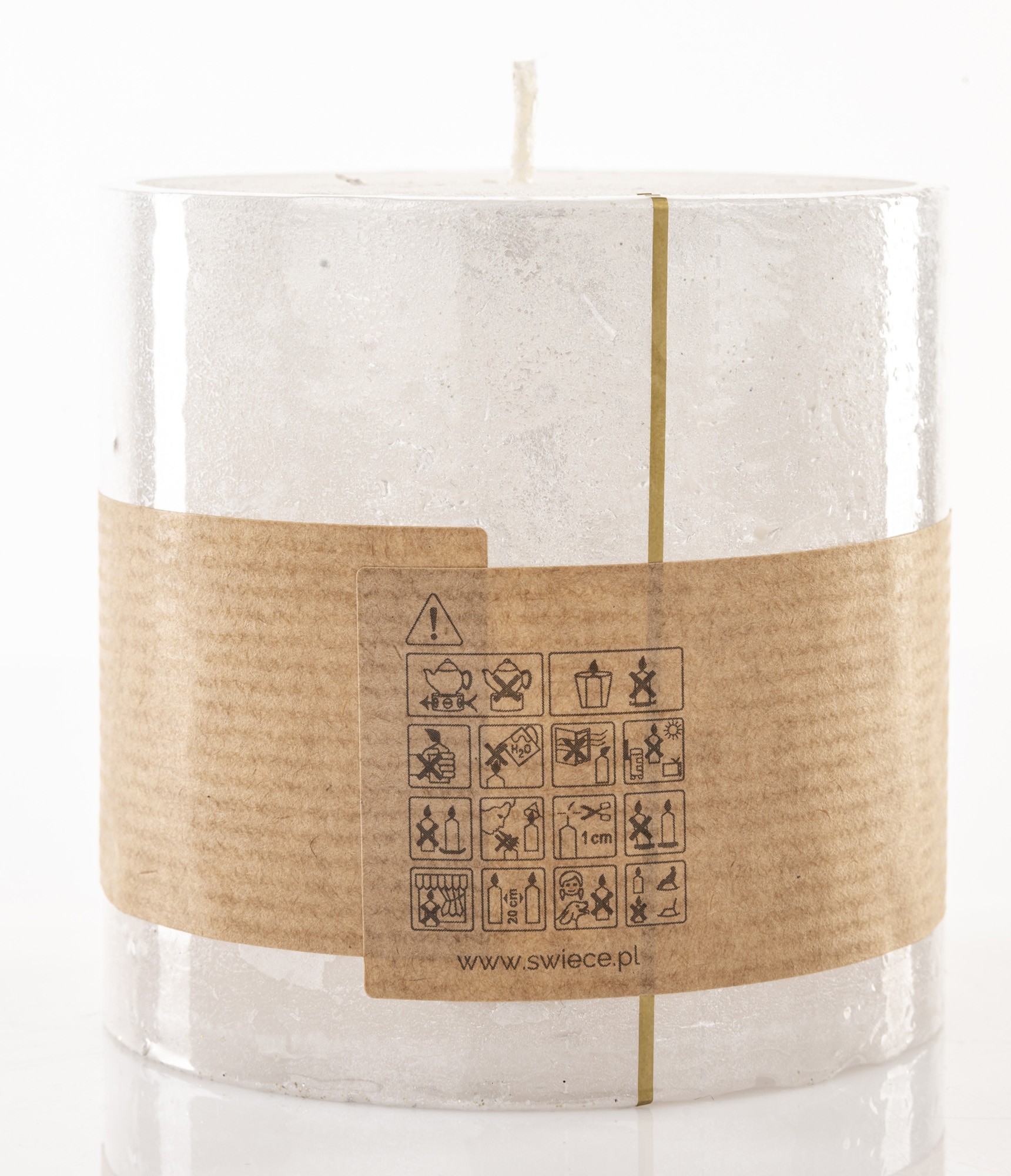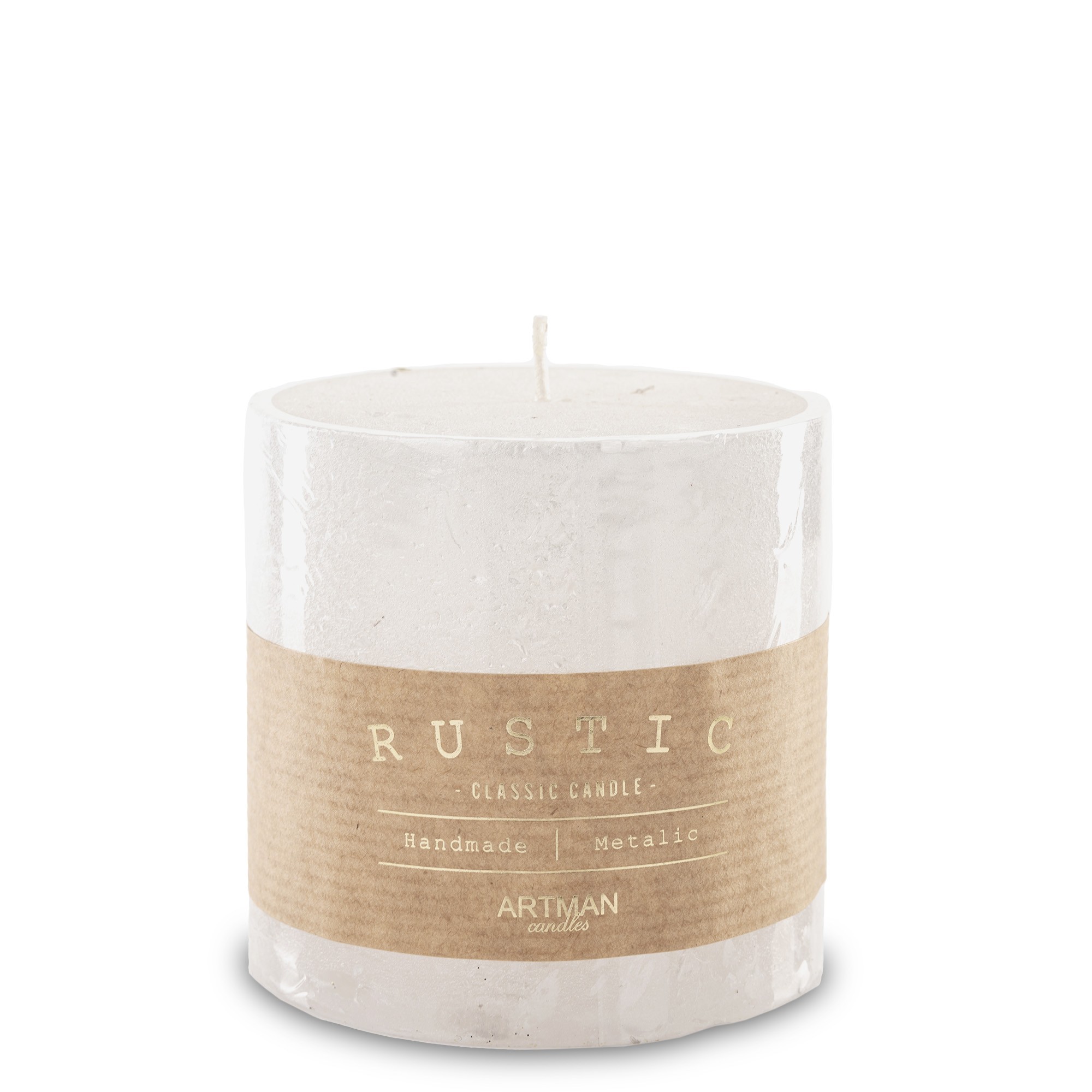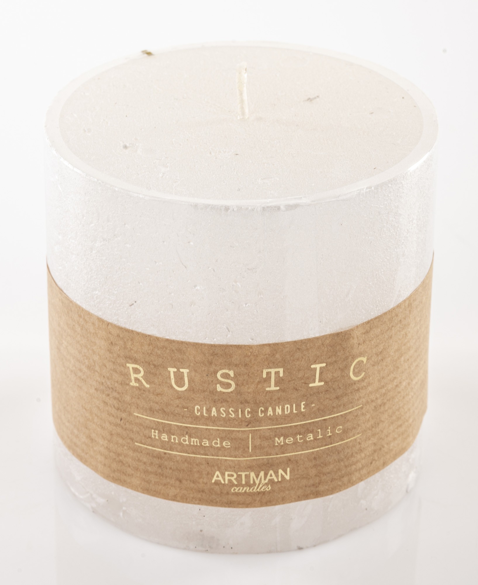 Pl Biały Świeca Rustic Metalic Walec Mały Fi9