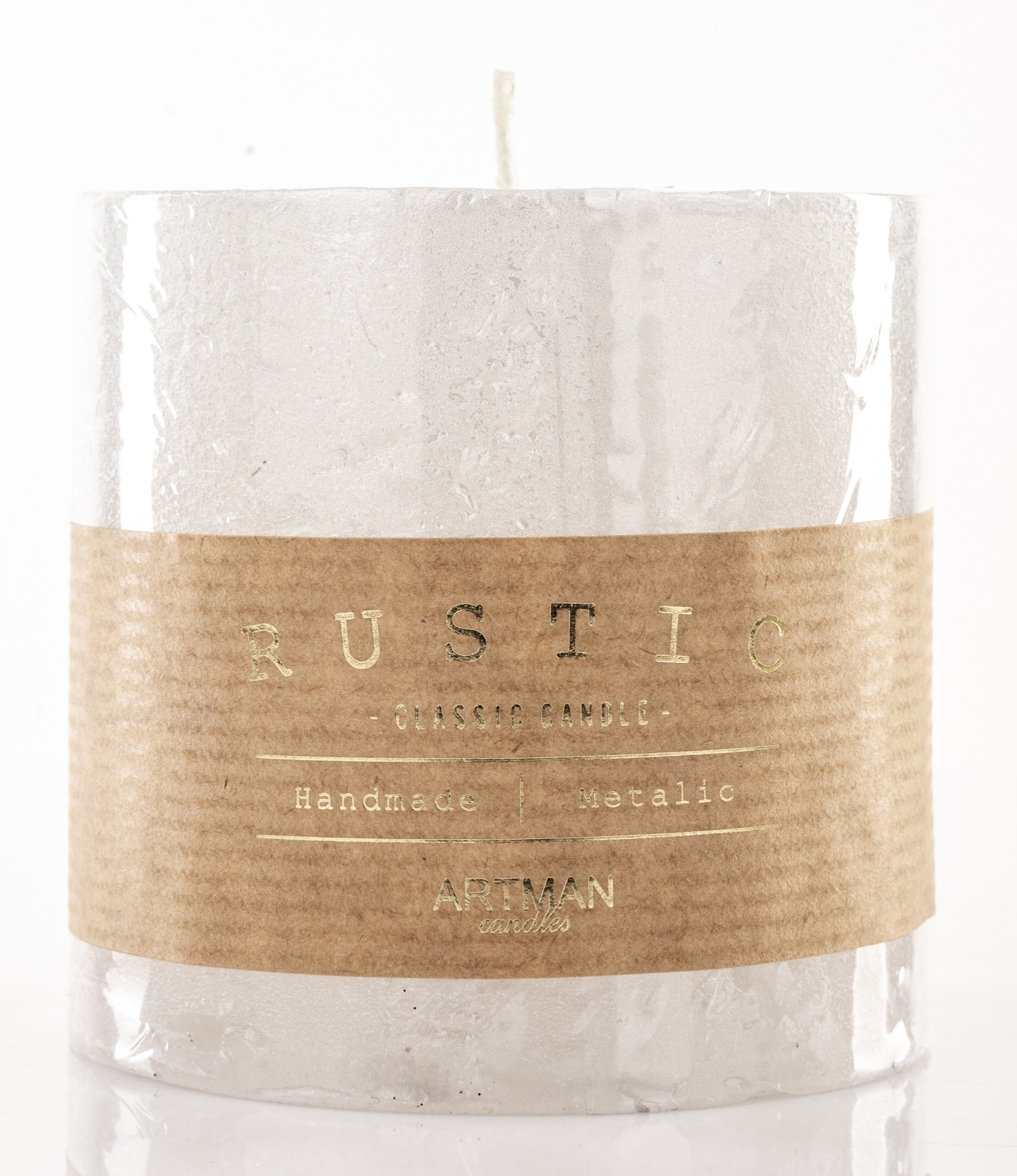 Pl Biały Świeca Rustic Metalic Walec Mały Fi7