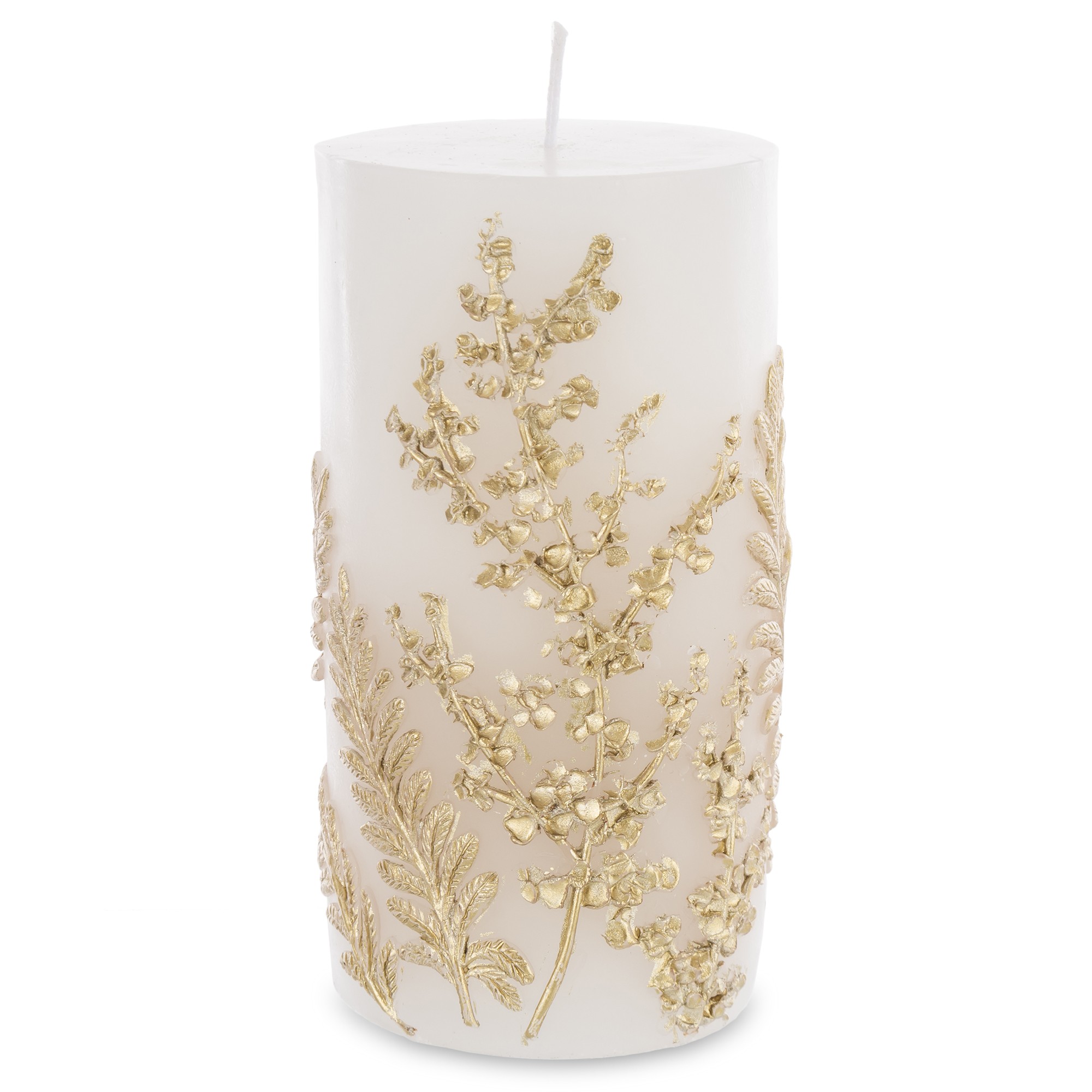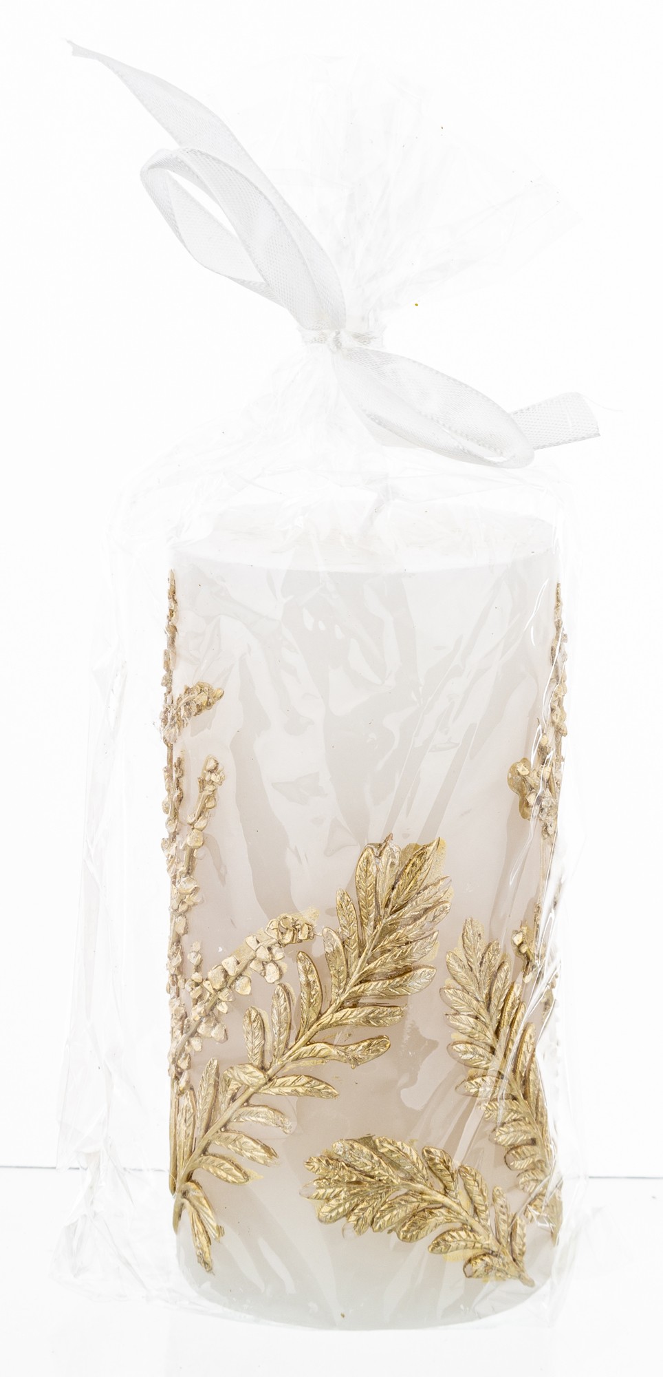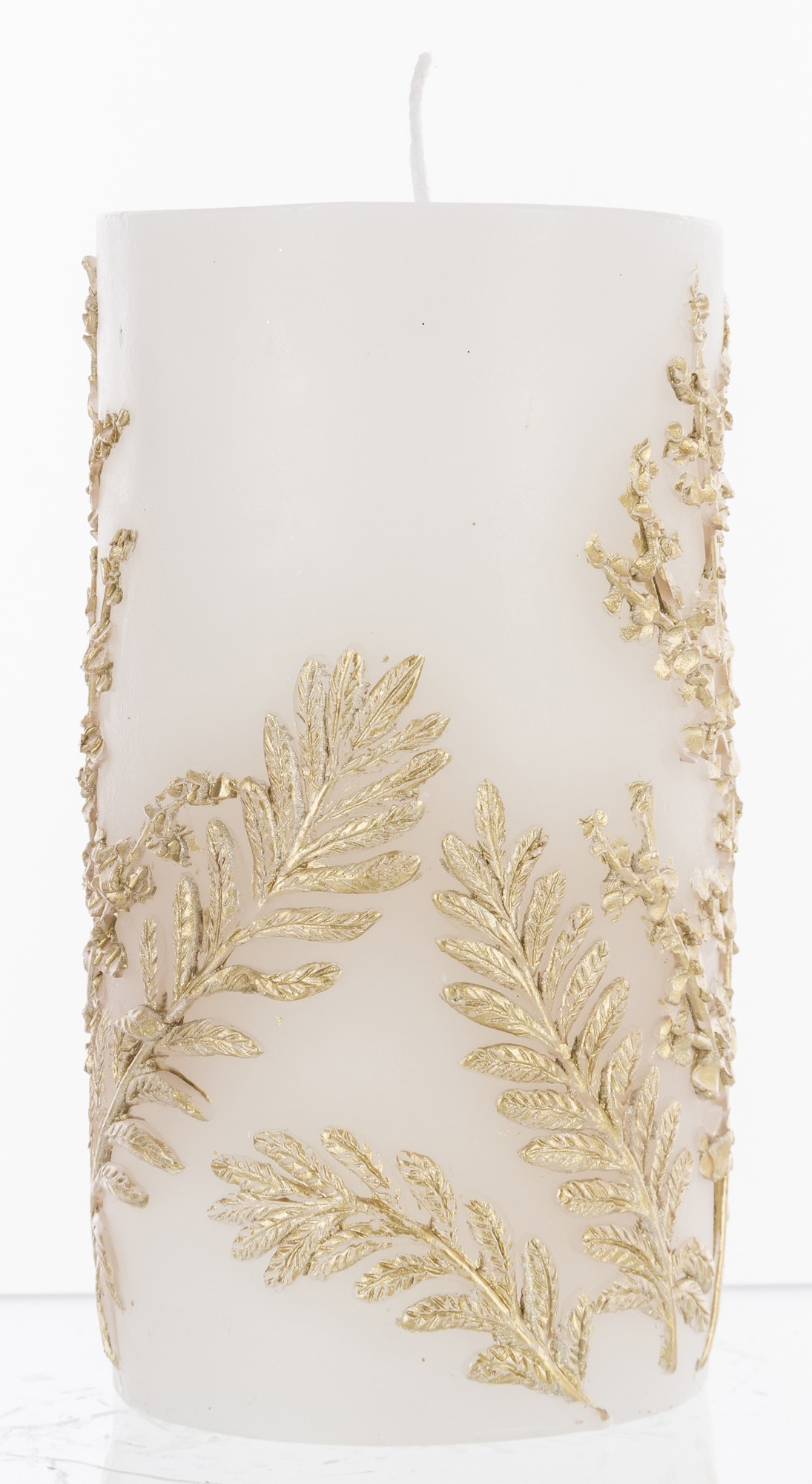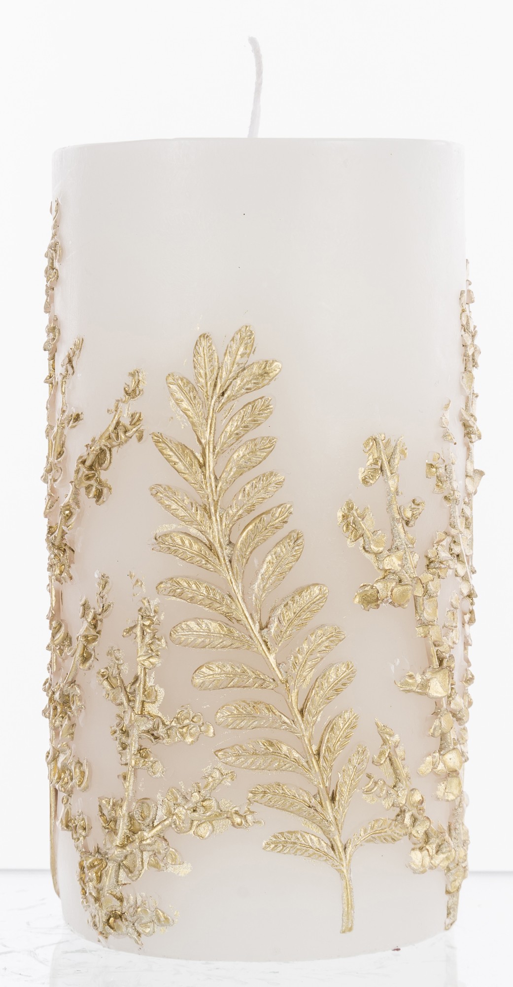 Pl Świeca Paproć Walec Średni Biały Złoto