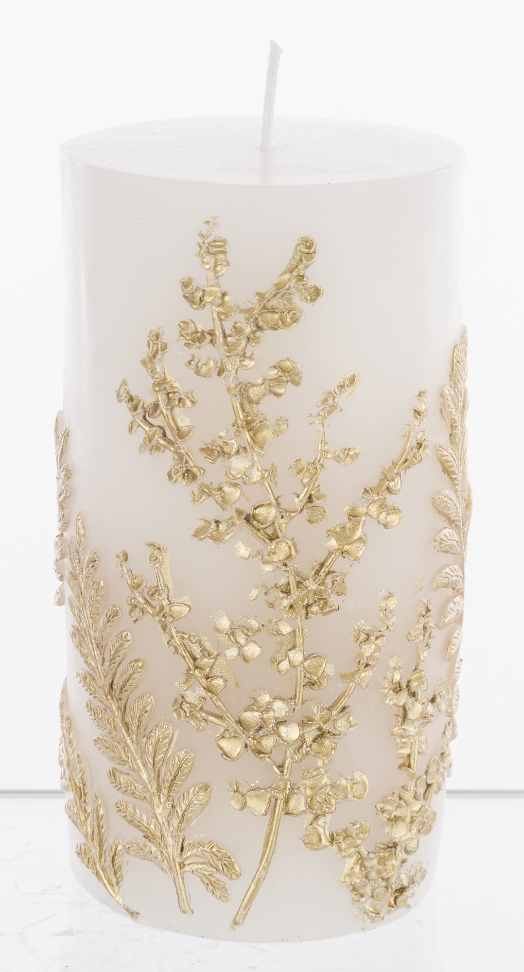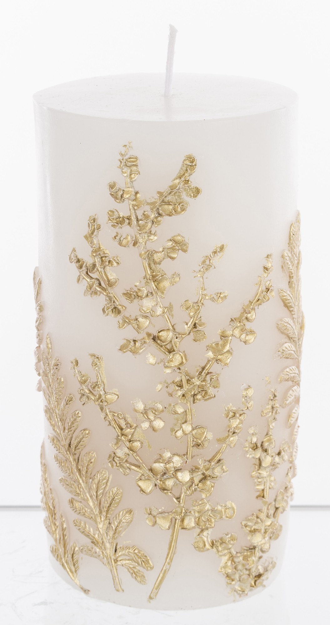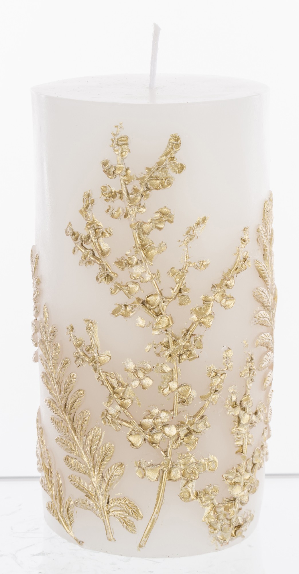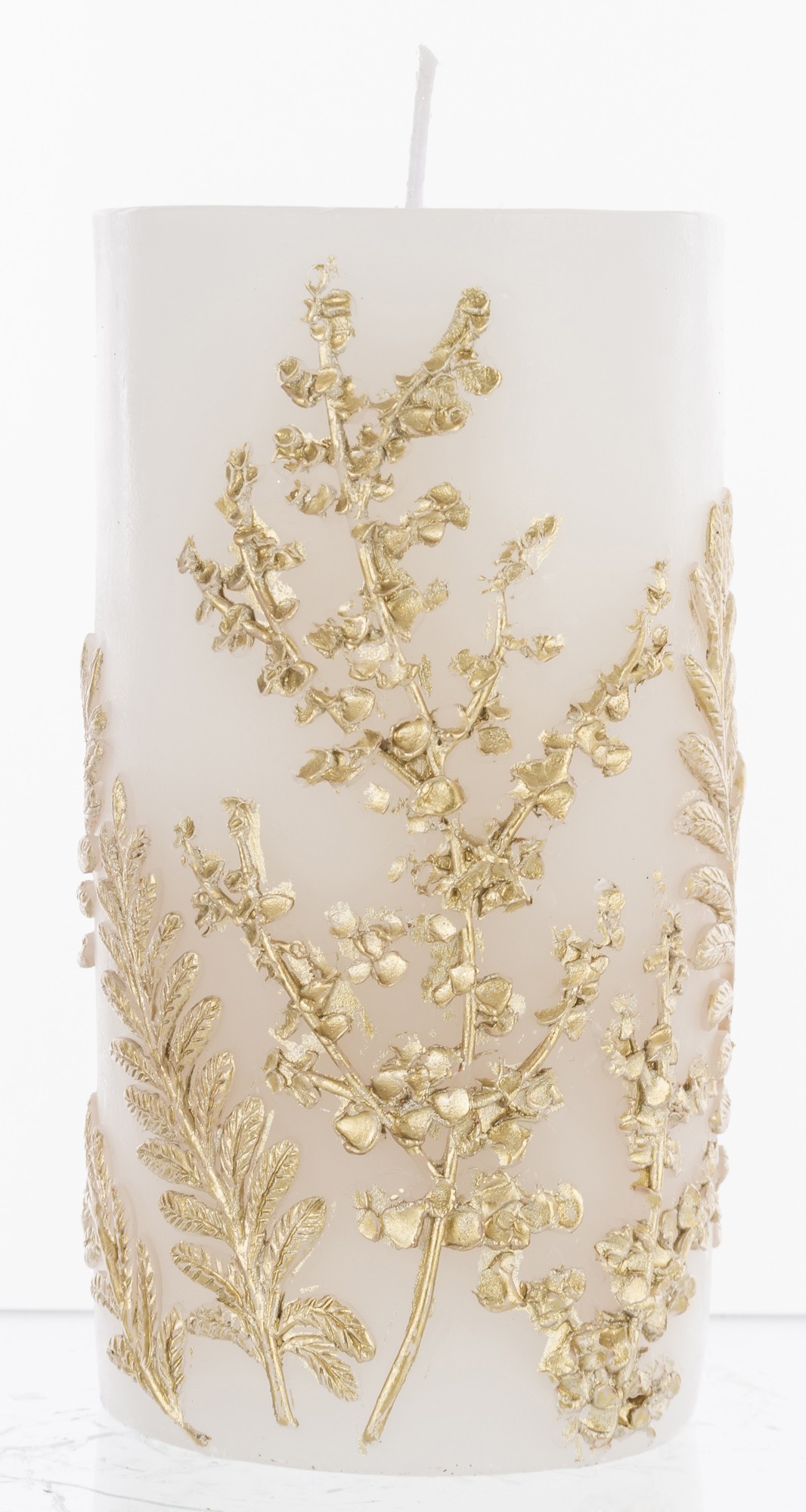 Pl Świeca Paproć Walec Średni Biały Złoto