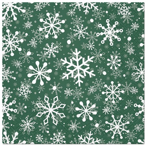 Pl Serwetki Chrustmas Snowflakes Green