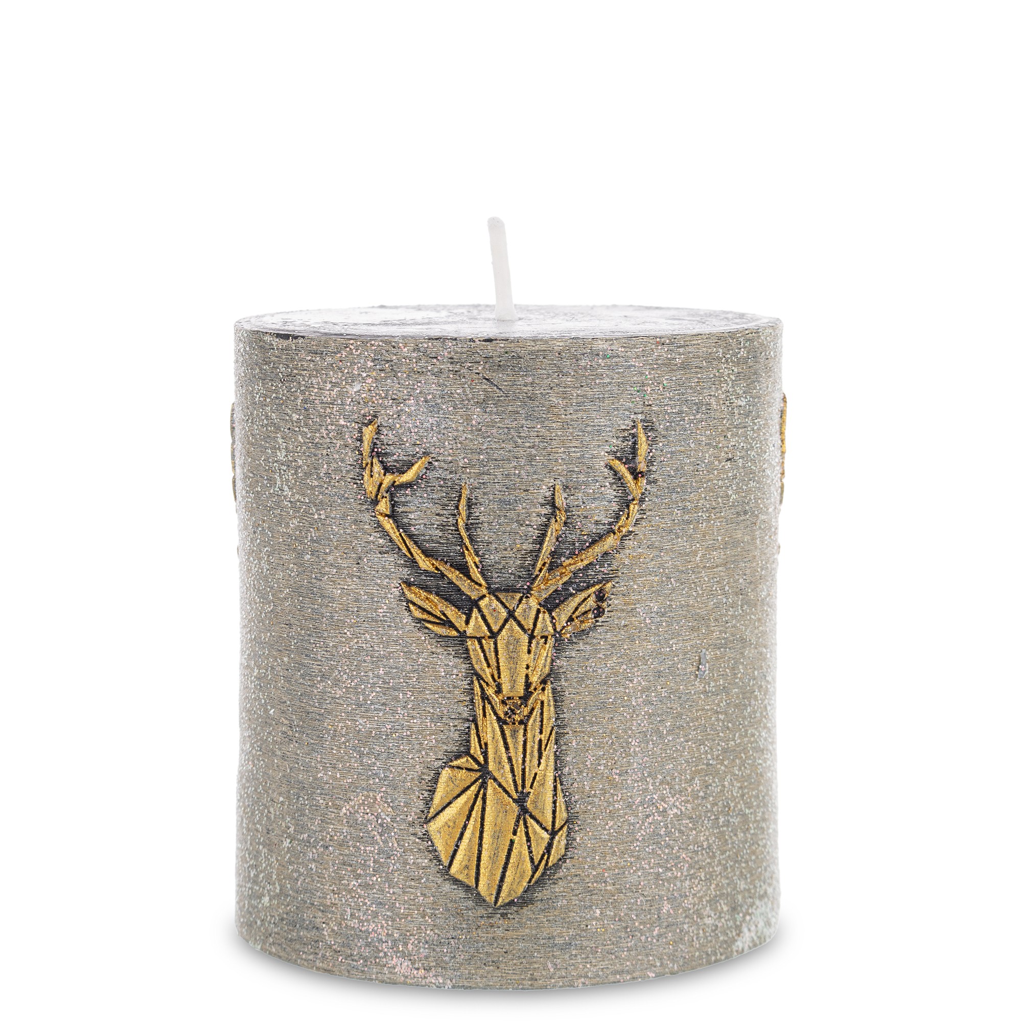 Pl Świeca Walec Mały Jeleń Głowa Zieleń Złoto