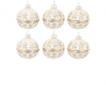 Pl Bombka Ecru Paski 6 Cm Kpl.6 Szt.