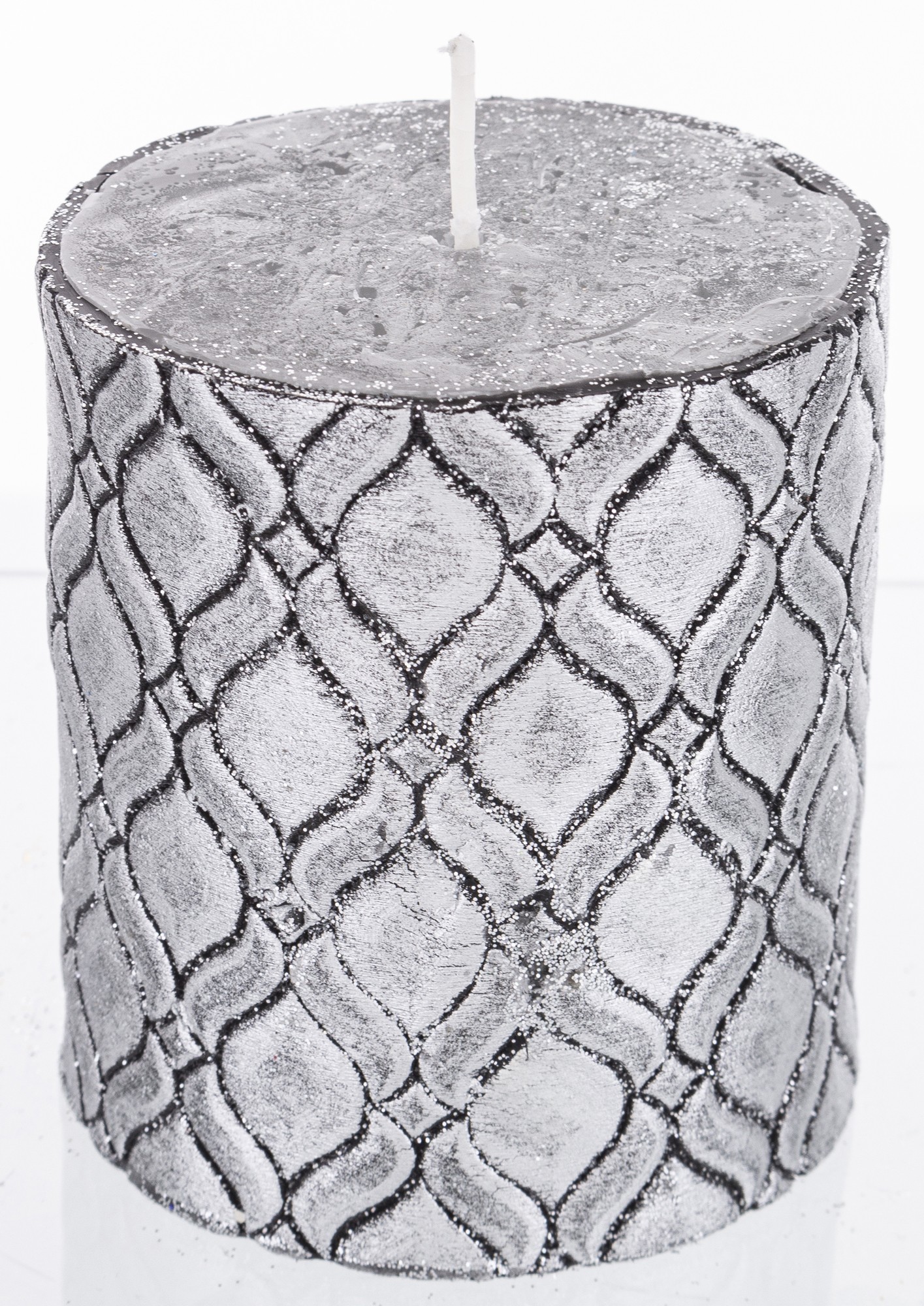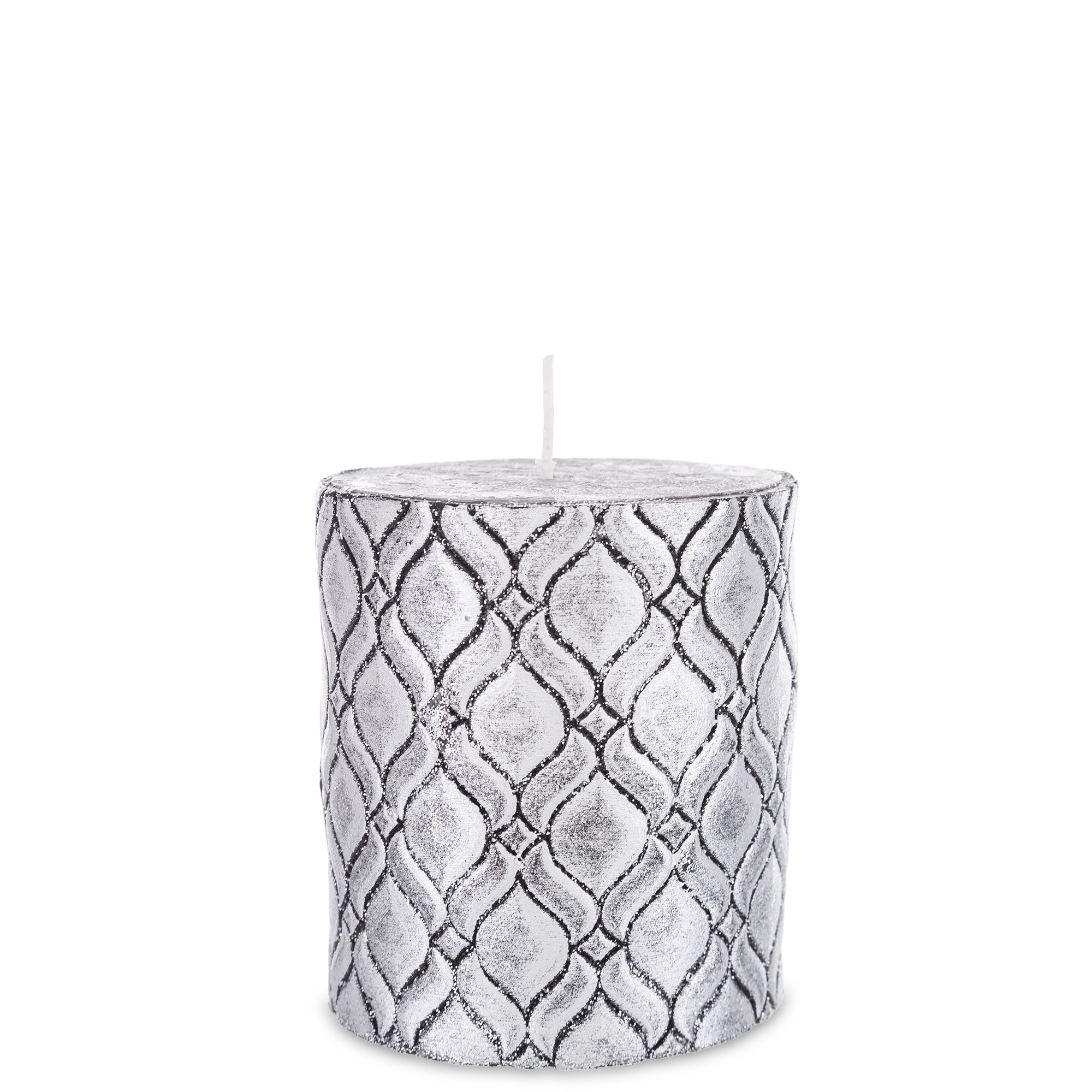 Pl Świeca Walec Średni Manhattan Czarny Srebro