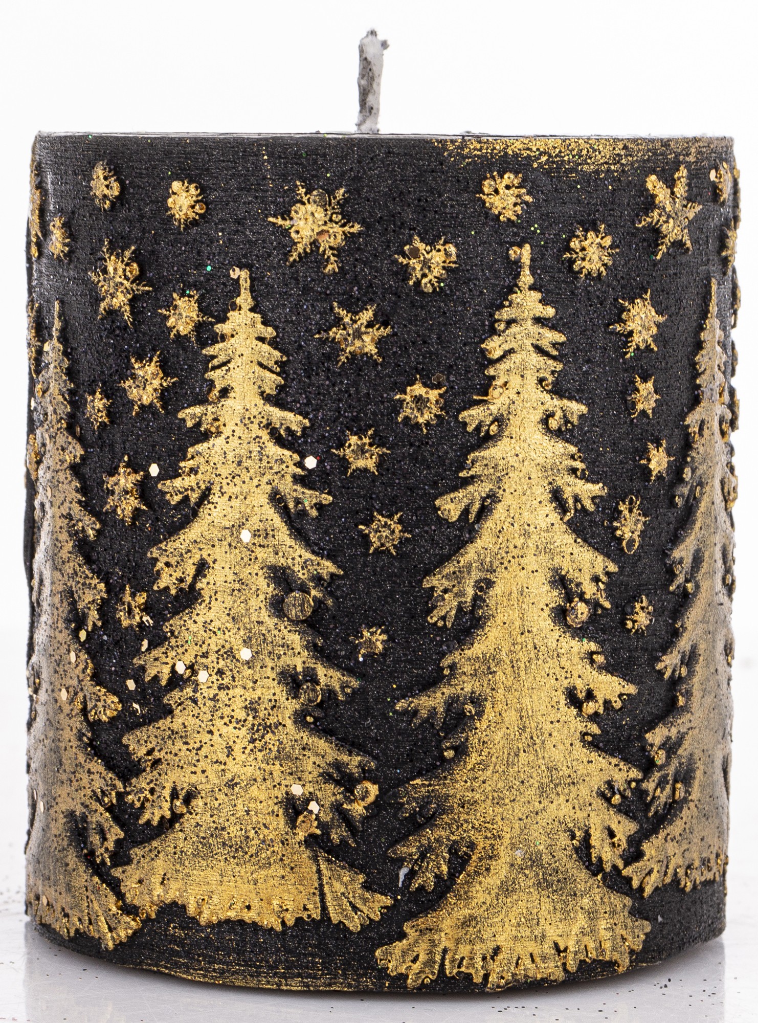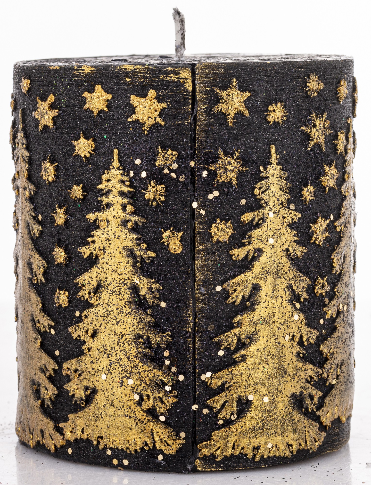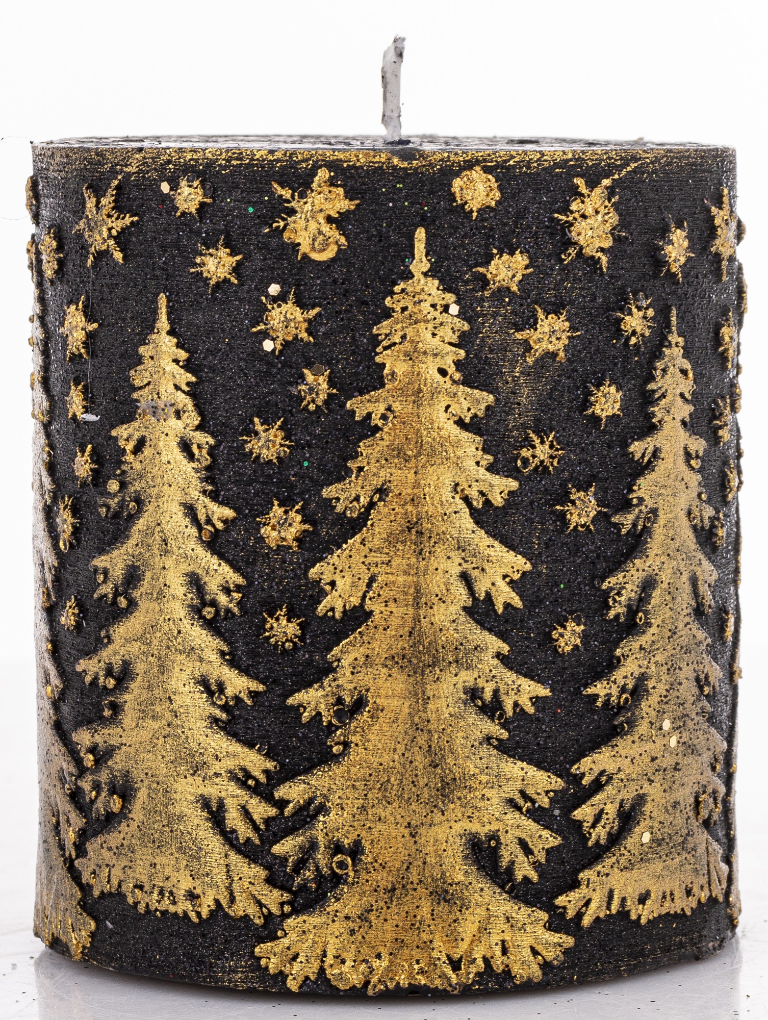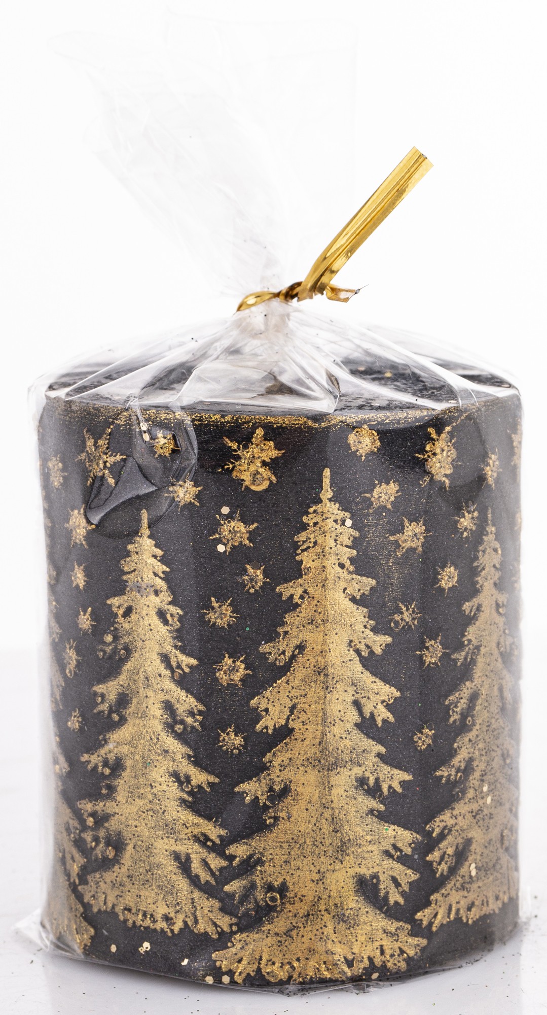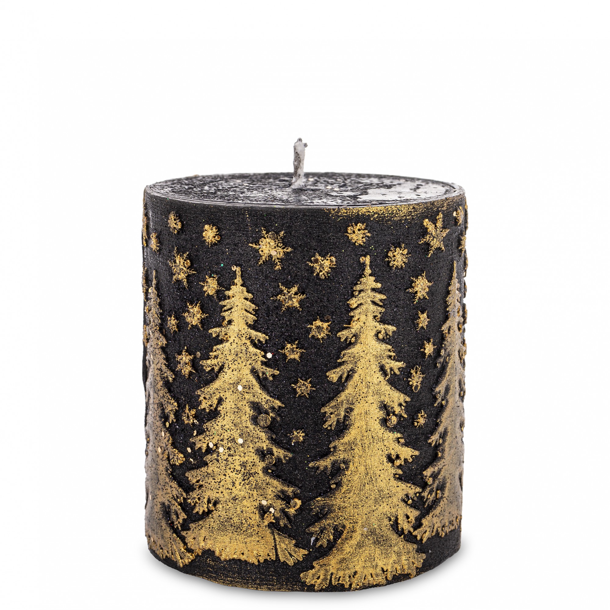 Pl Świeca Walec Mały Świerk Czarny Złoto