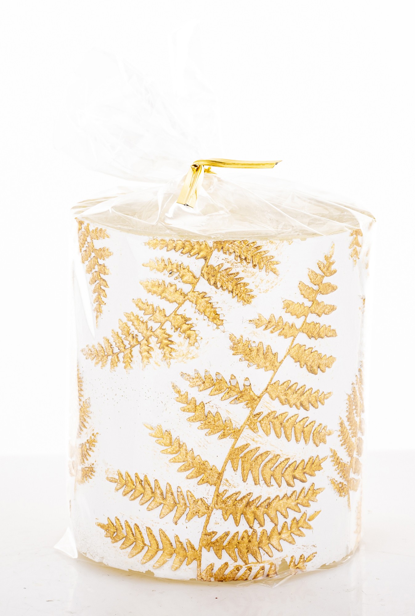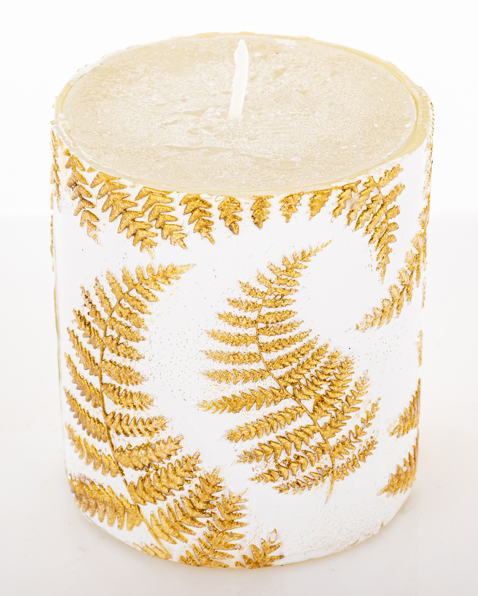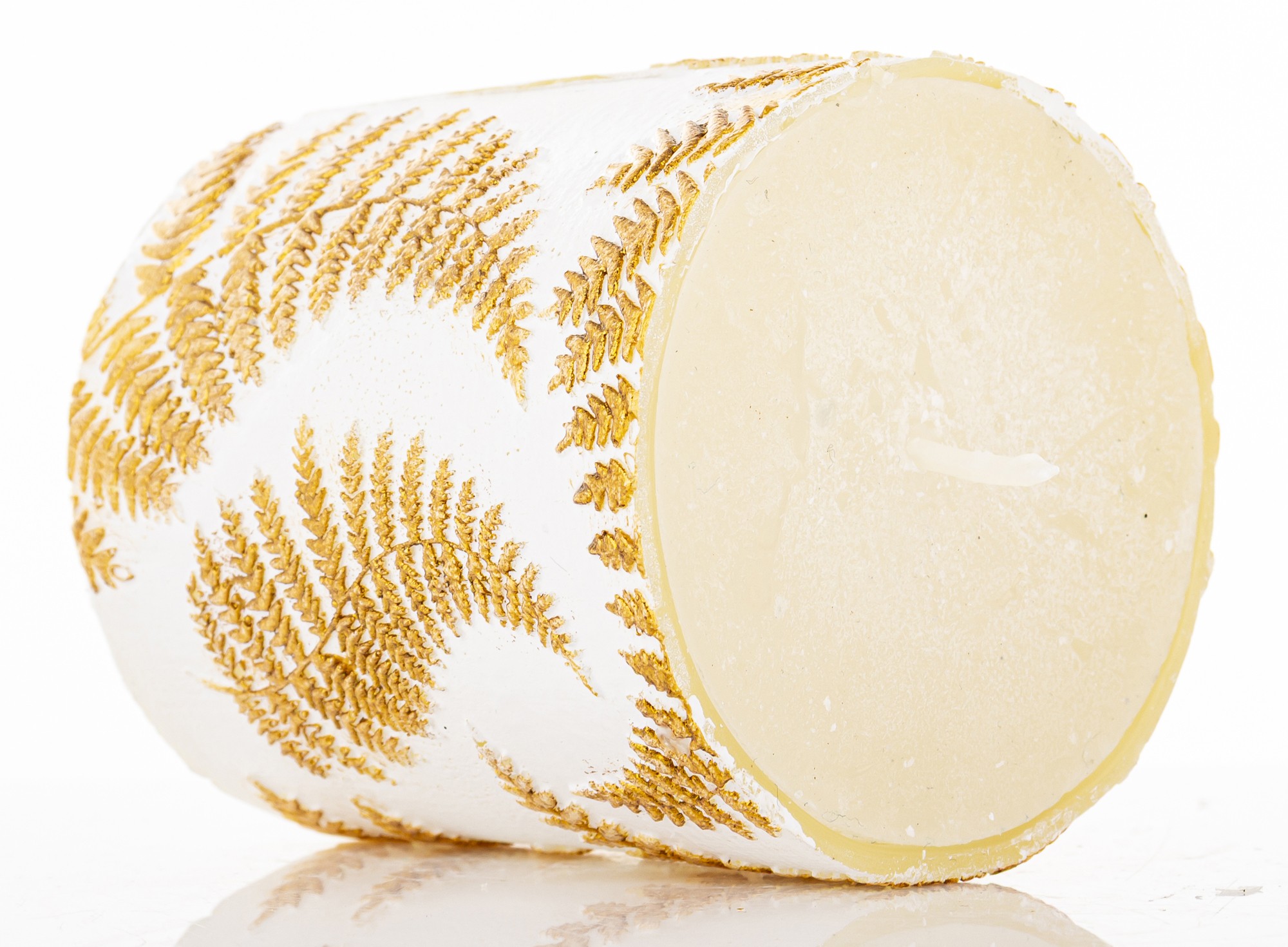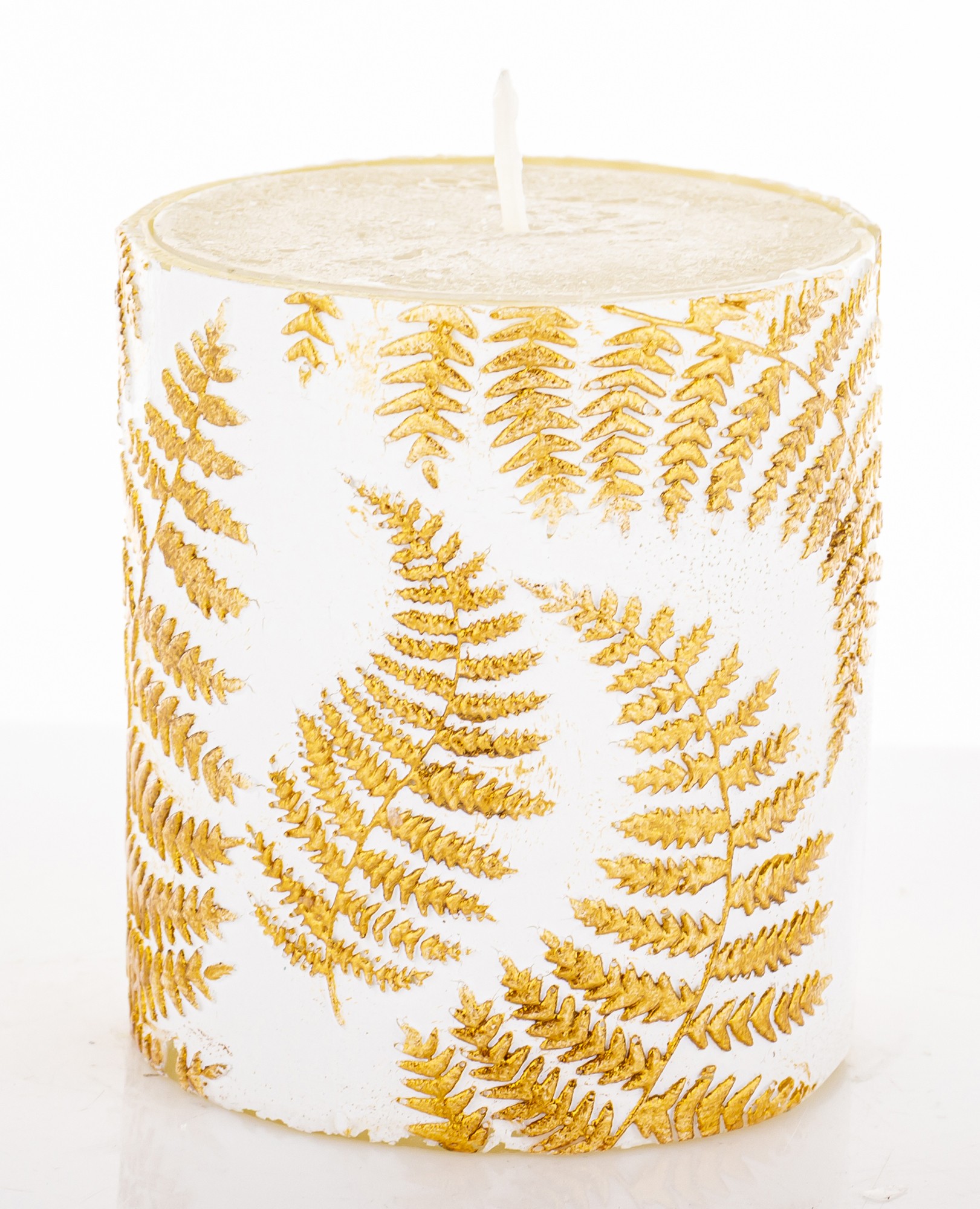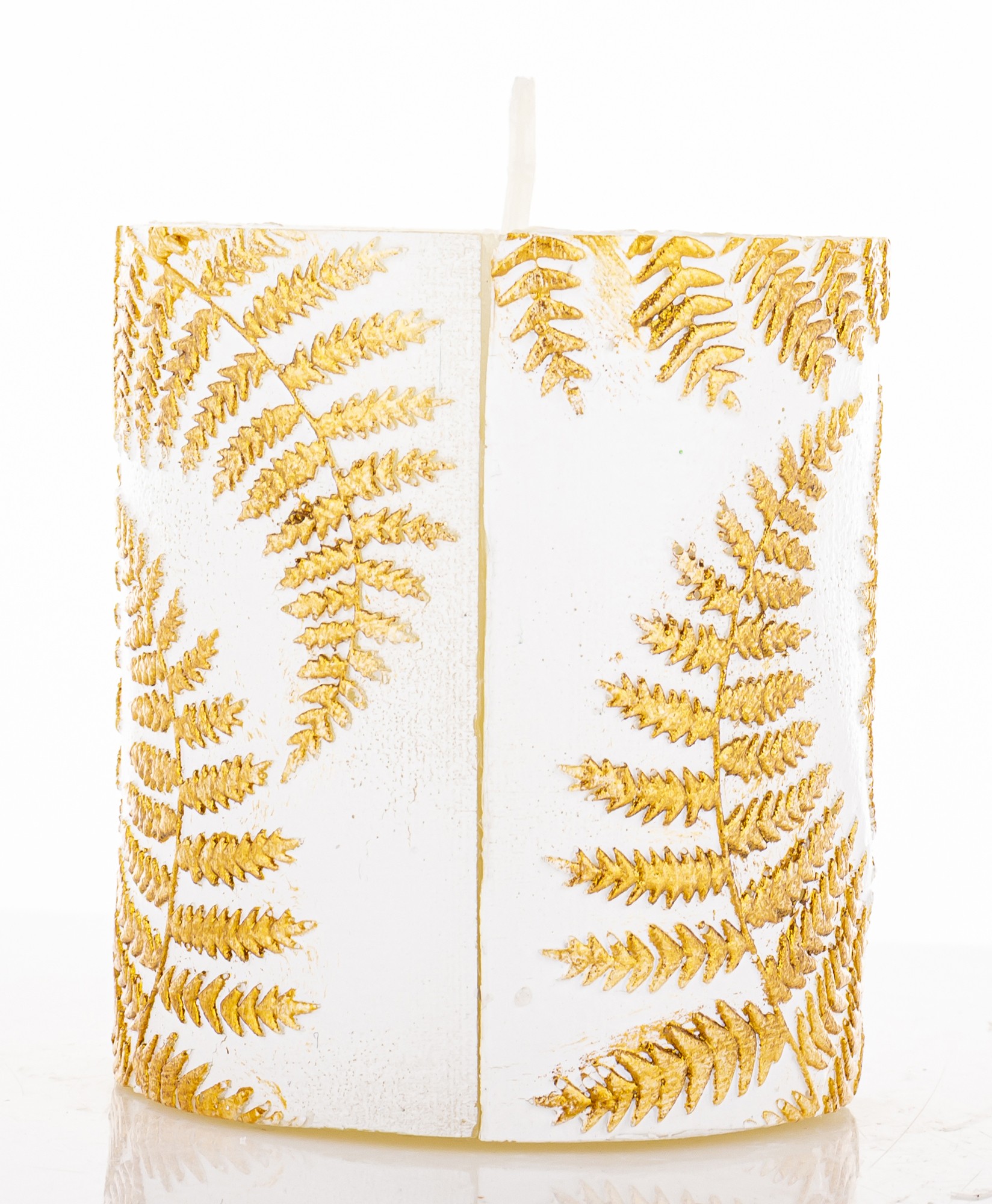 Pl Świeca Paproć Walec Mały Biały Złoto