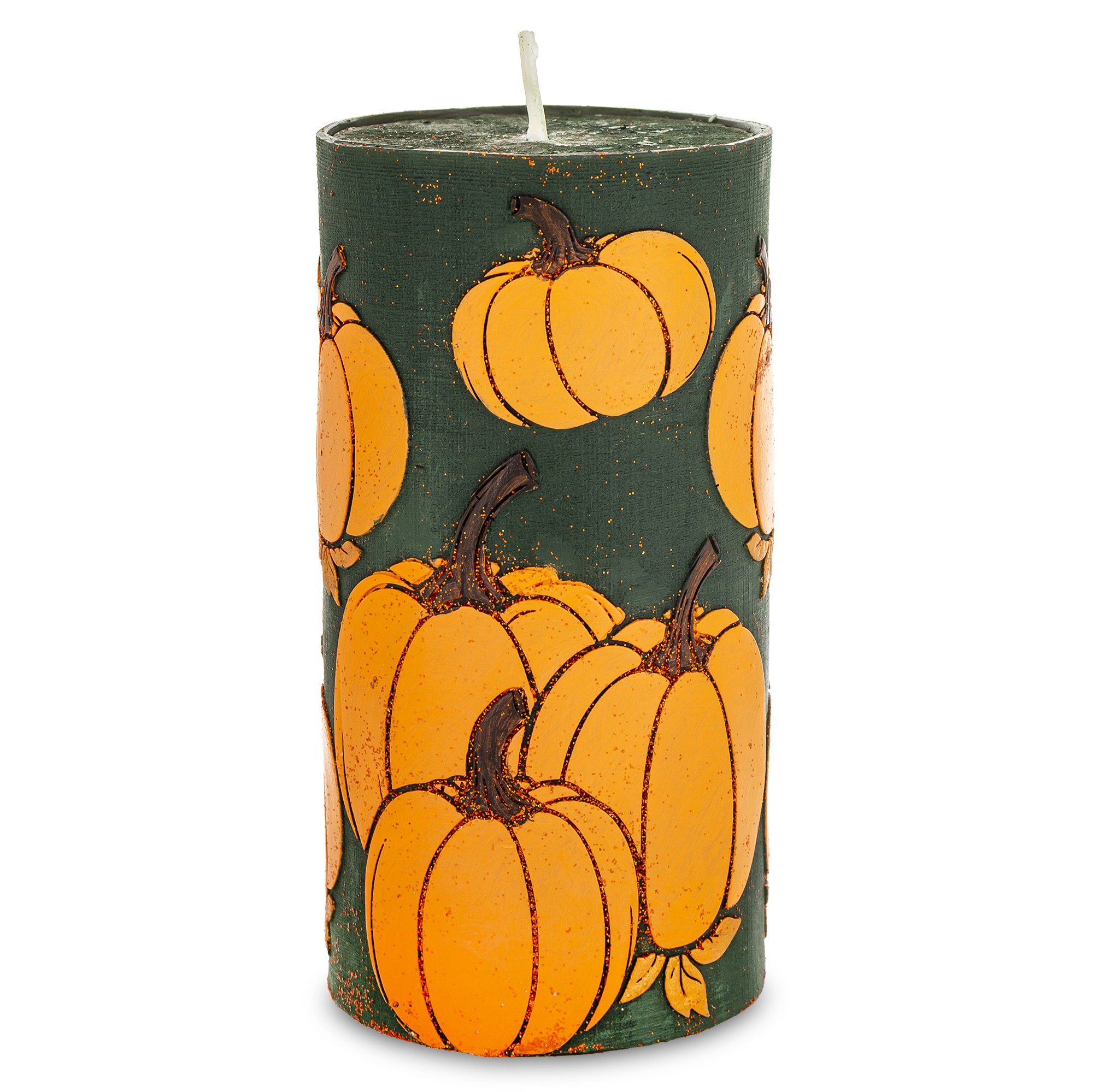 Pl Świeca Dynie Walec Średni Zieleń Pomarańcz