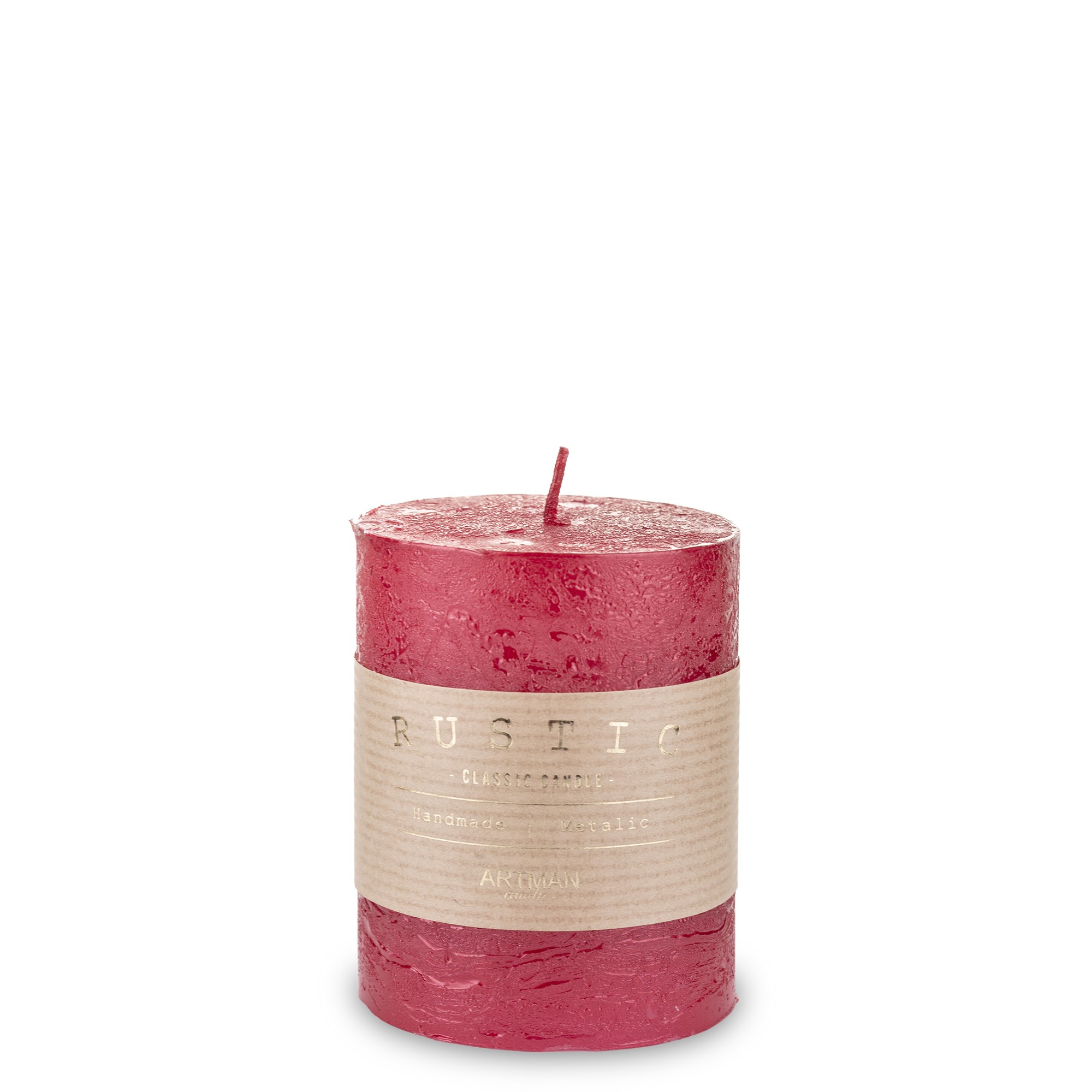 Pl Czerwony Świeca Rustic Metalic Walec Średni Fi9