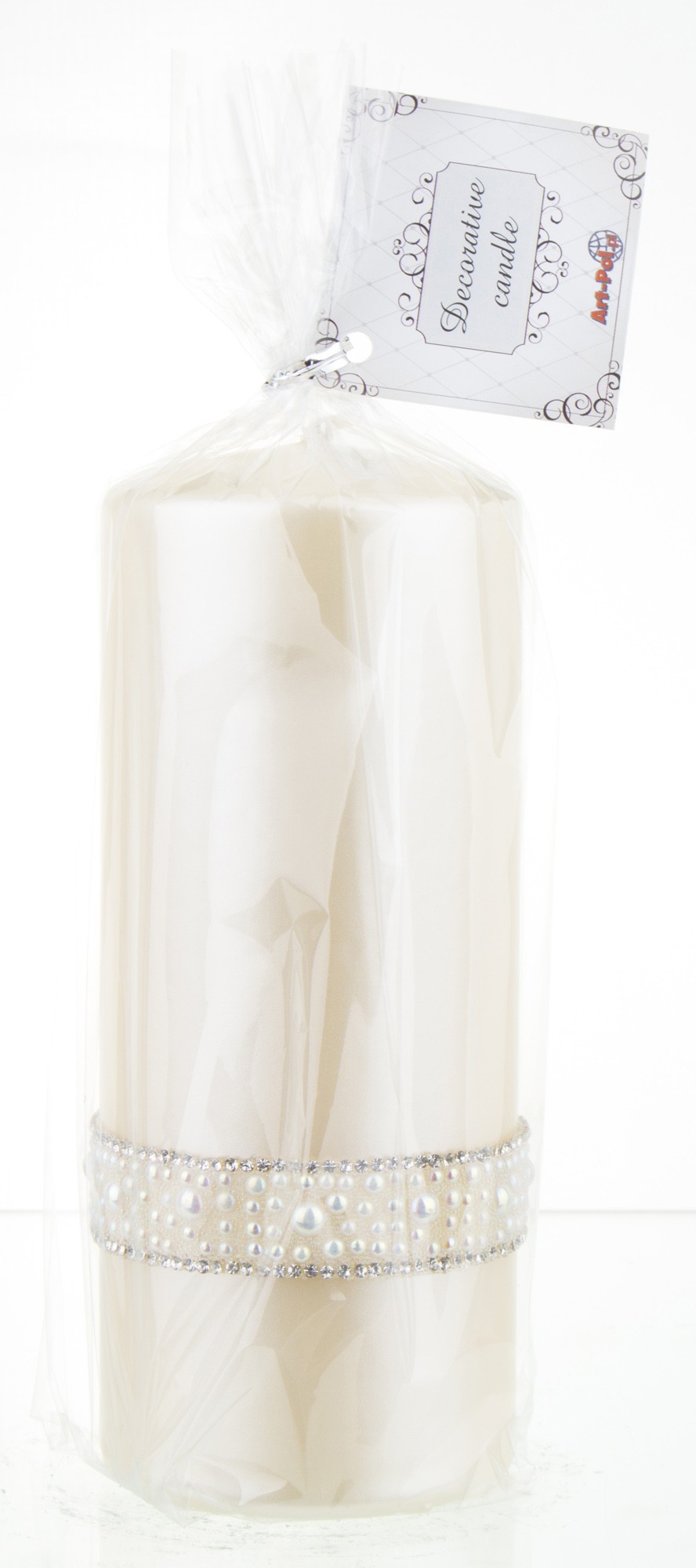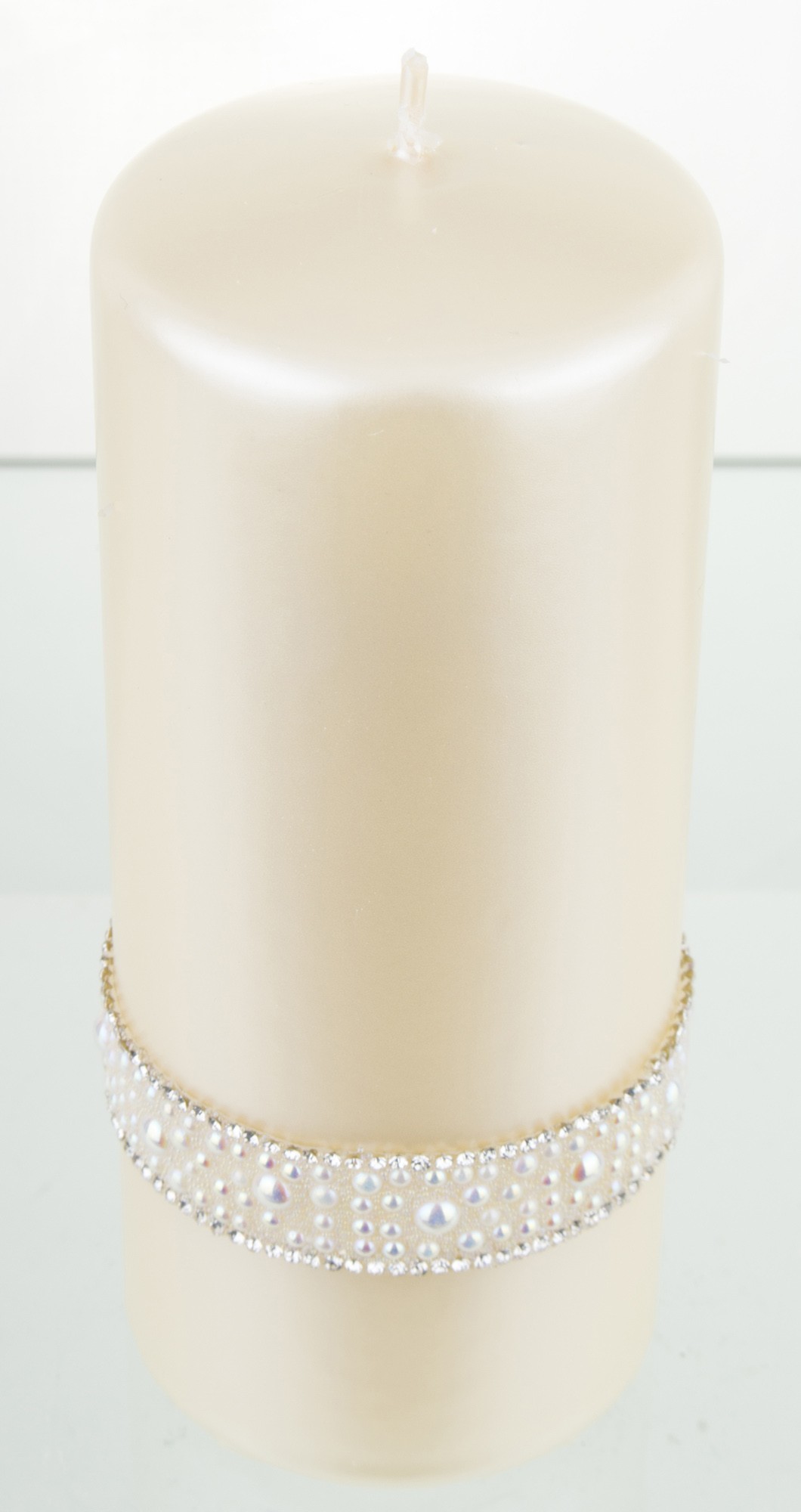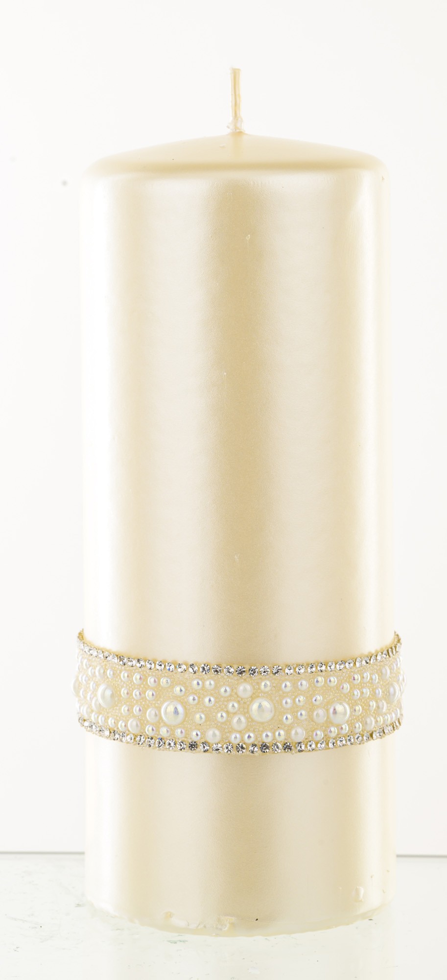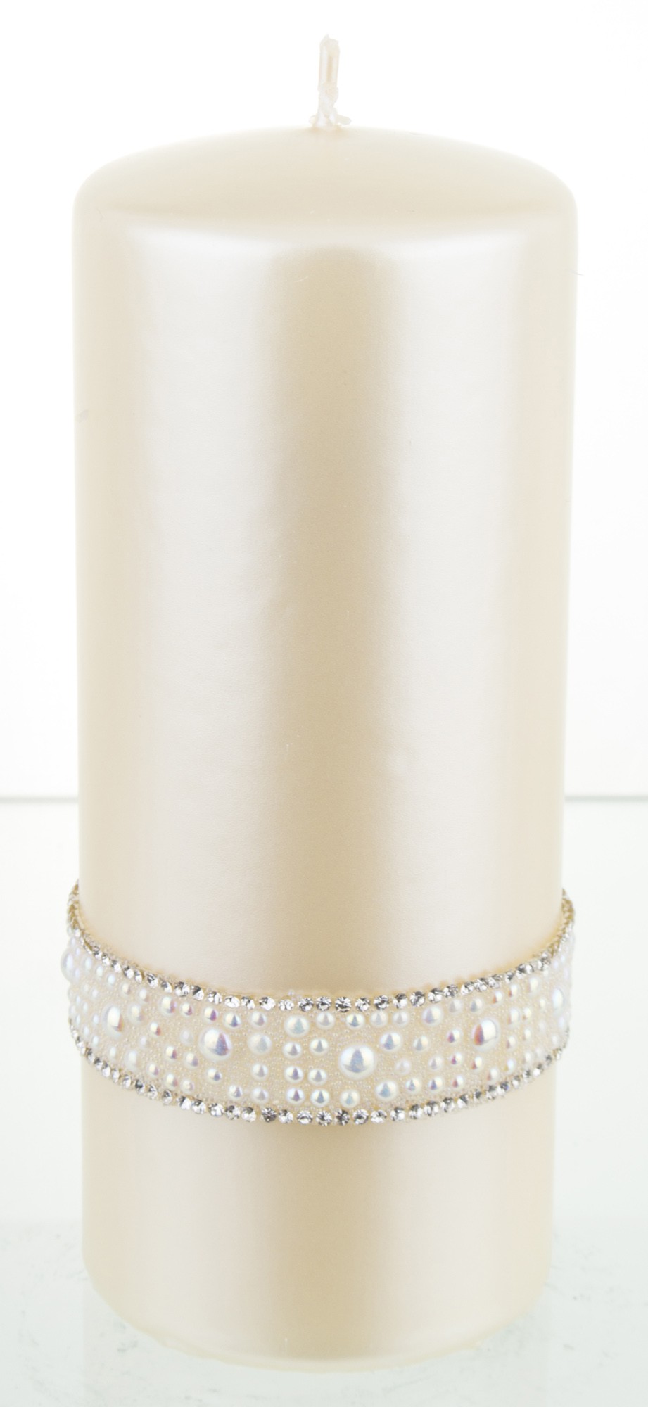 En Большая свеча кремового цвета с кристаллами опалового жемчуга