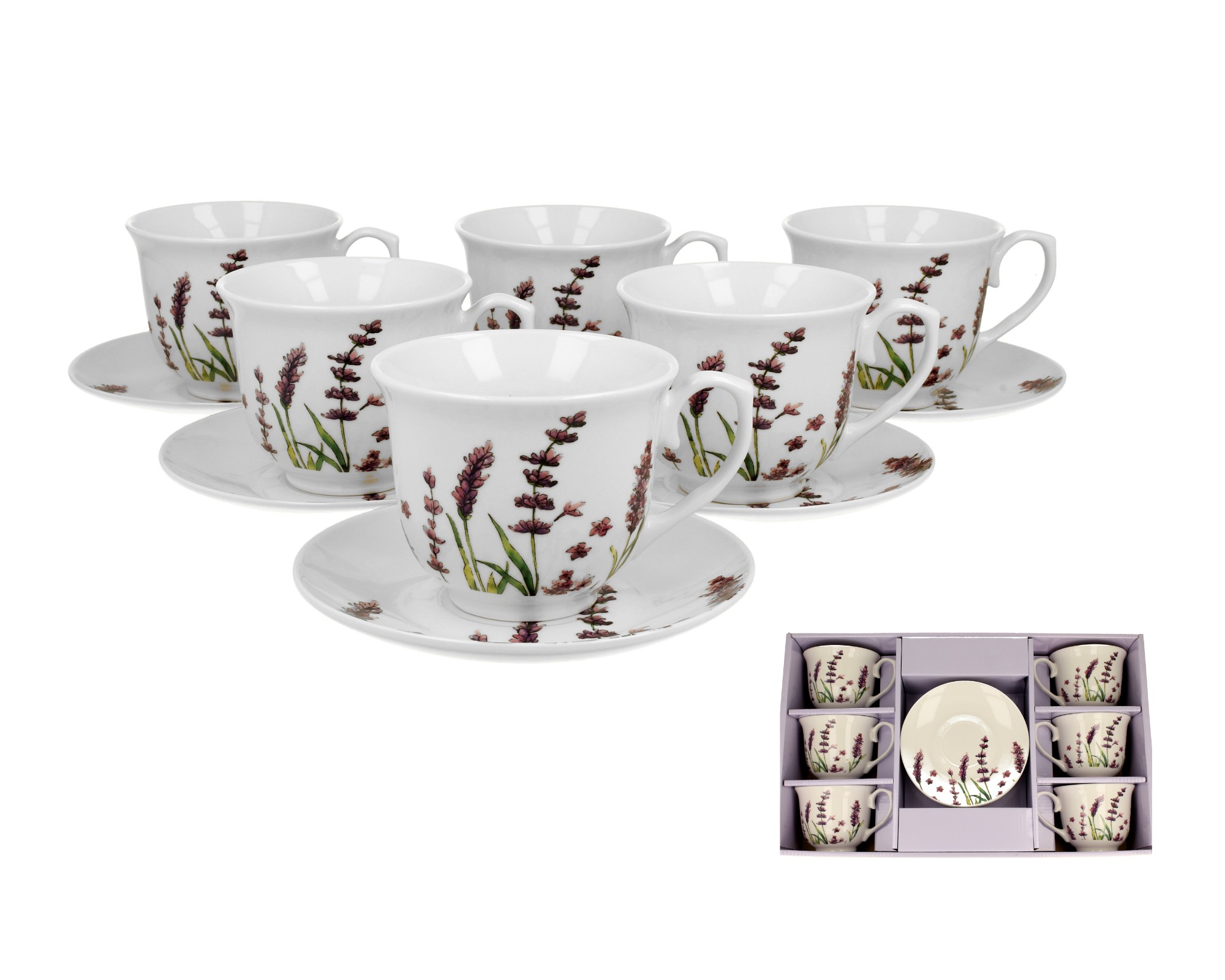 6 чашек с блюдцами классическая лаванда 250 мл